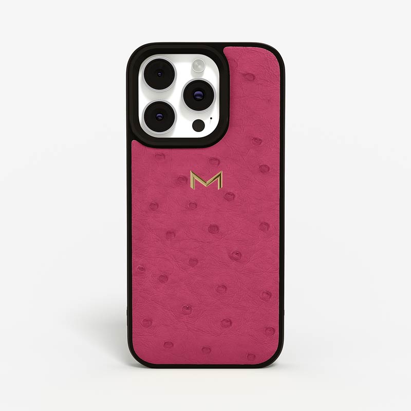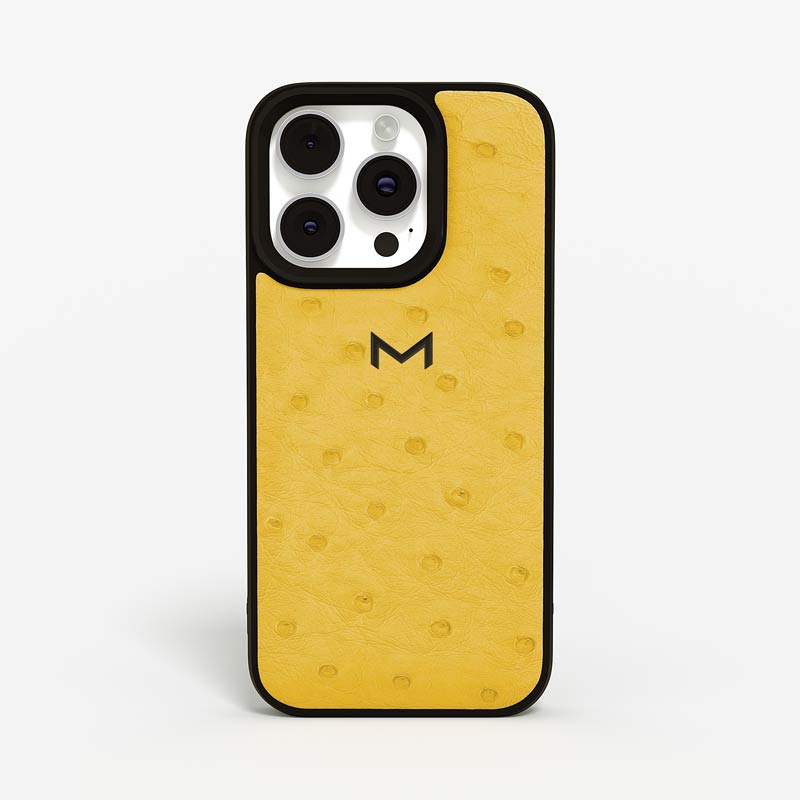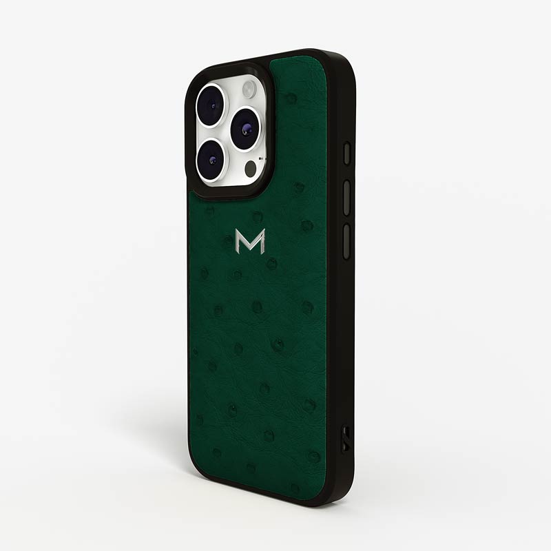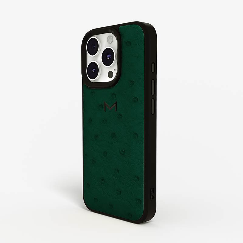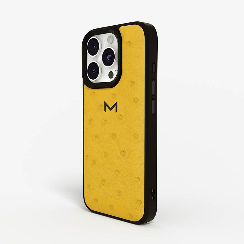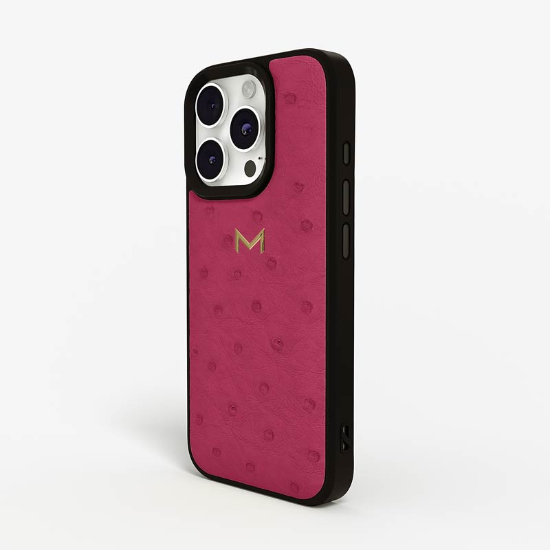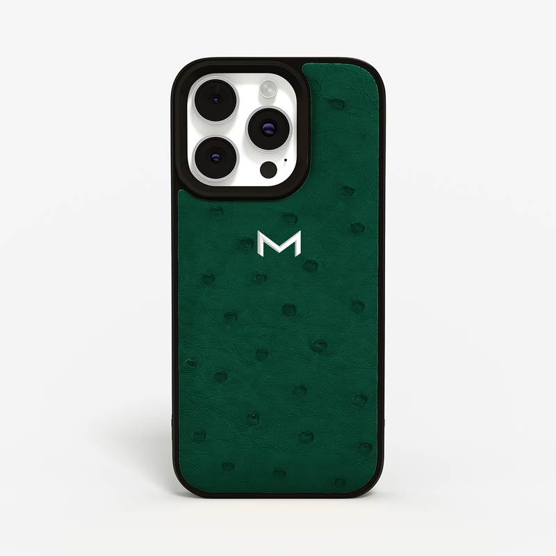 Exclusively made to order and entirely handcrafted, this iPhone 16 Pro Max case is sheathed in hand-selected, full-quill ostrich leather — valued for its supple texture, natural markings, and unmistakable character. Inside, a soft Alcantara lining cradles your device, preserving its flawless condition. The hand-polished 316L stainless steel logo and camera ring reflect a commitment to detail and craftsmanship rarely seen.