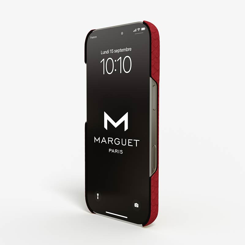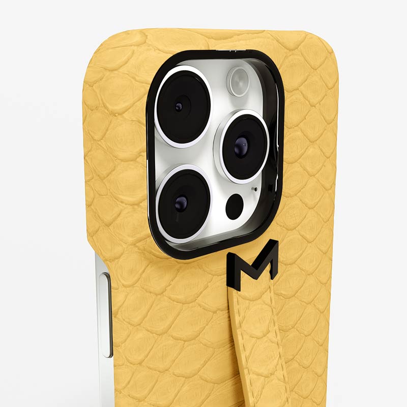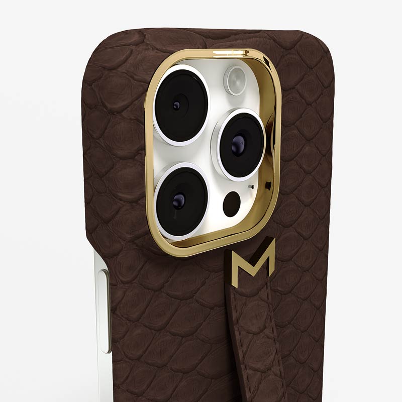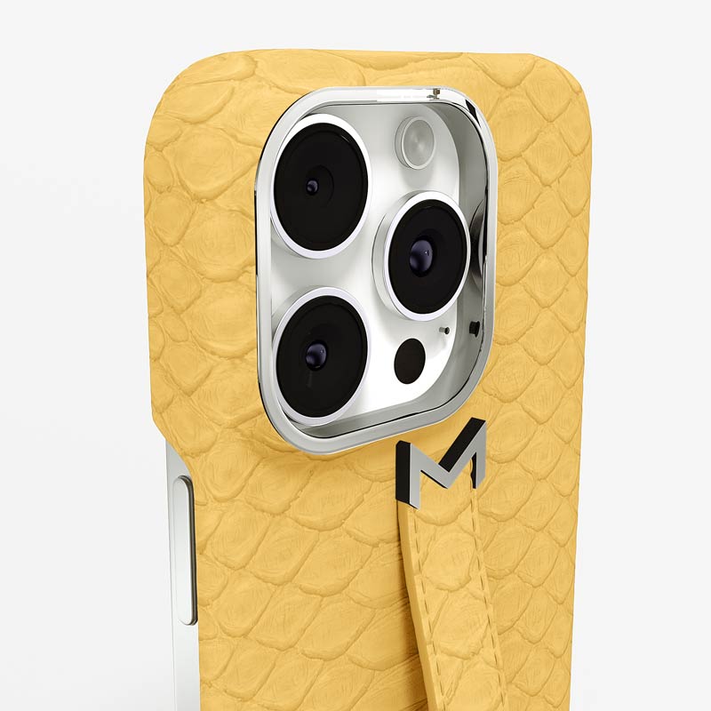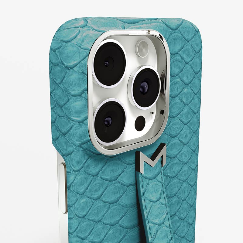 Exclusively made to order and entirely handcrafted, this iPhone 15 Pro case is sheathed in hand-selected python leather — chosen for its exotic texture, unique scale pattern, and bold presence. Inside, a soft Alcantara lining cradles your device, preserving its flawless condition. The hand-polished 316L stainless steel logo and camera ring reflect a commitment to detail and craftsmanship rarely seen.