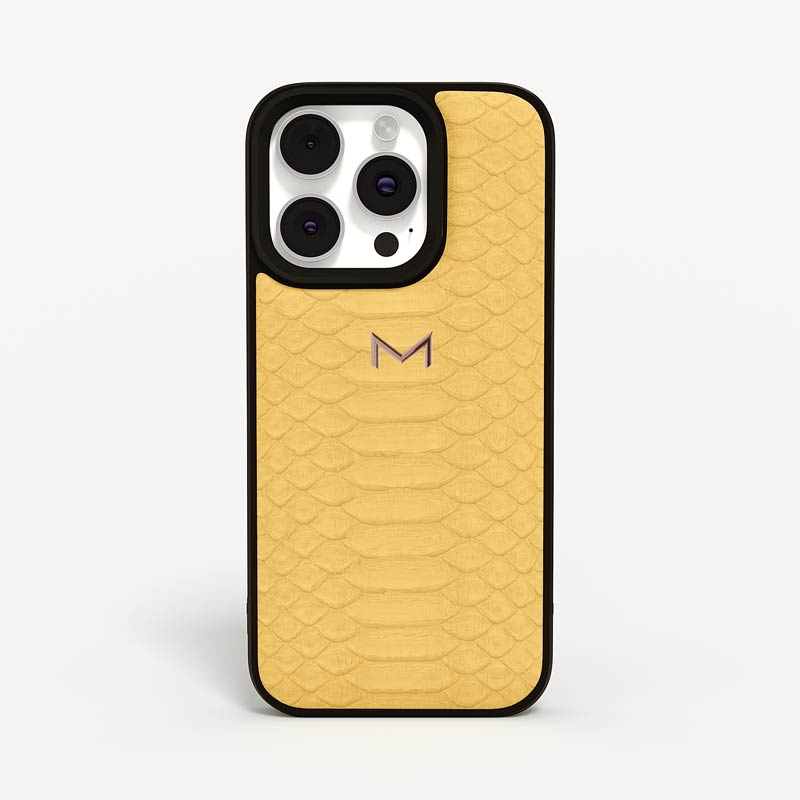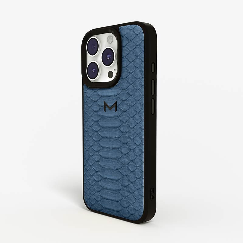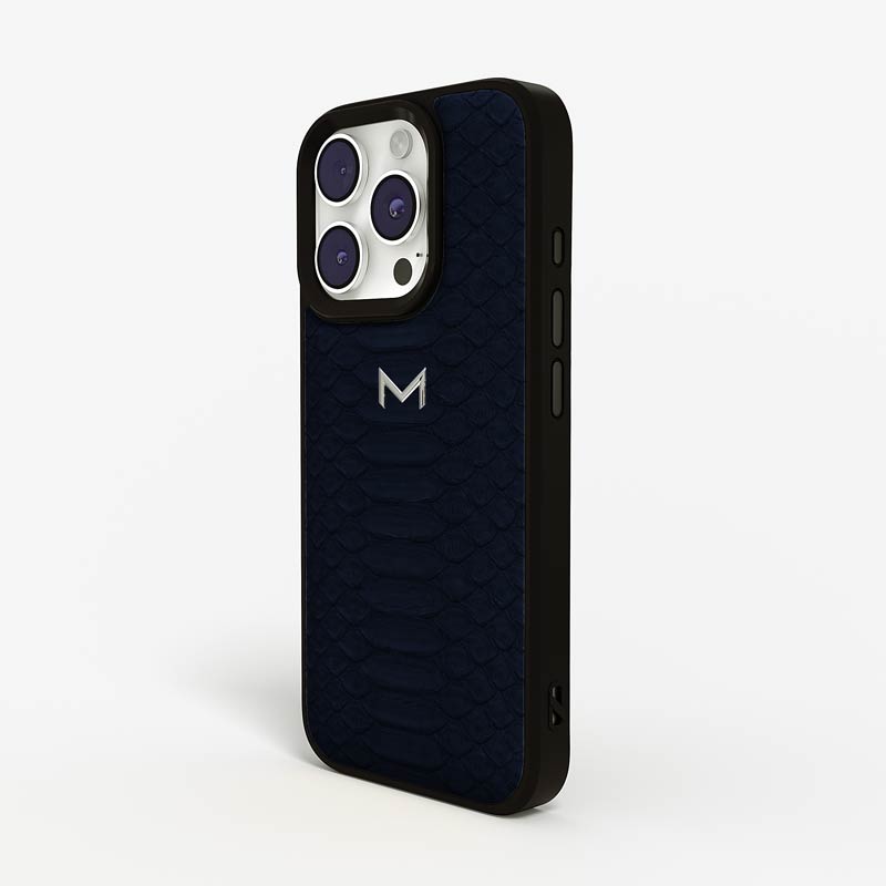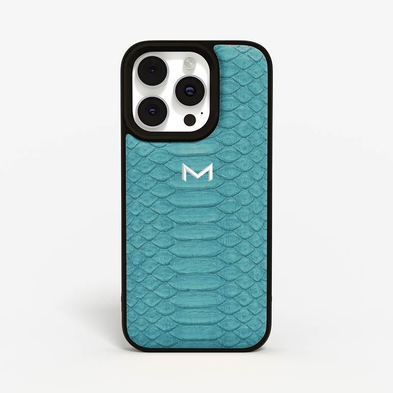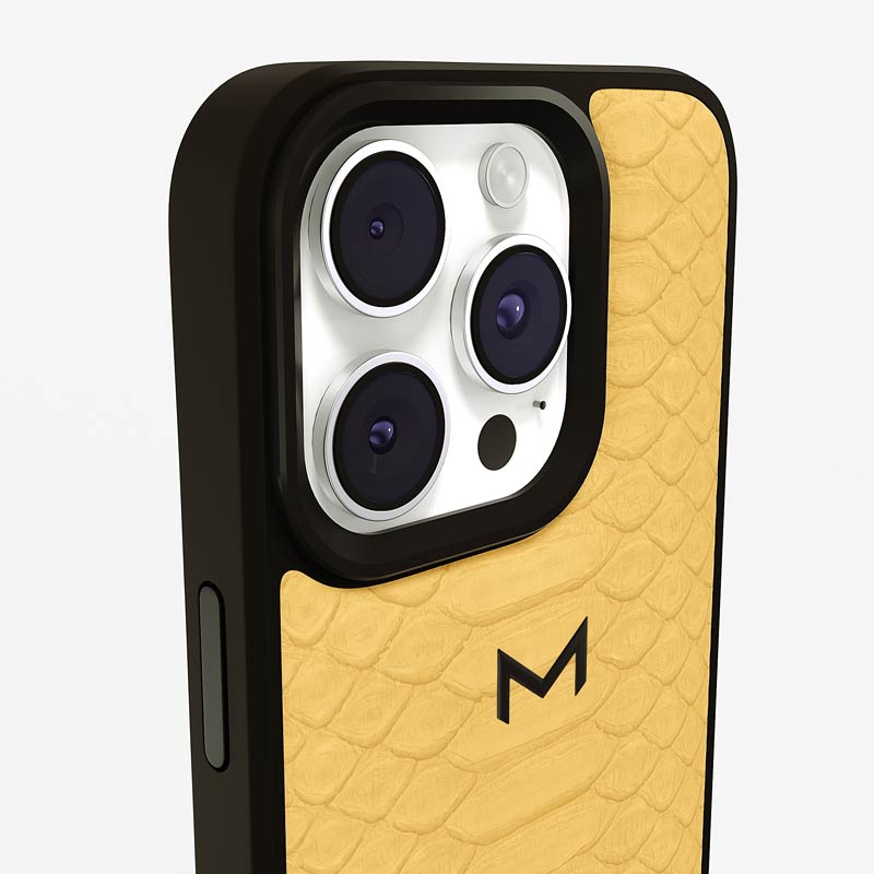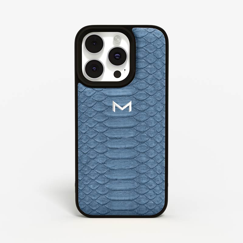 Exclusively made to order and entirely handcrafted, this iPhone 15 Pro case is sheathed in hand-selected python leather — chosen for its exotic texture, unique scale pattern, and bold presence. Inside, a soft Alcantara lining cradles your device, preserving its flawless condition. The hand-polished 316L stainless steel logo and camera ring reflect a commitment to detail and craftsmanship rarely seen.