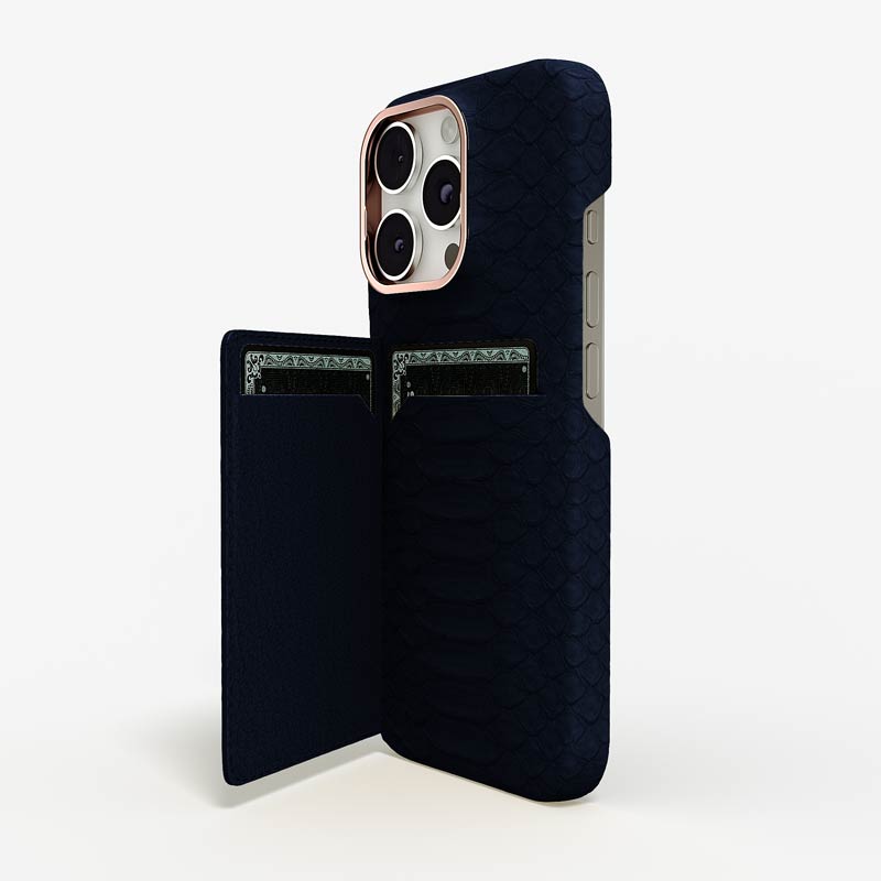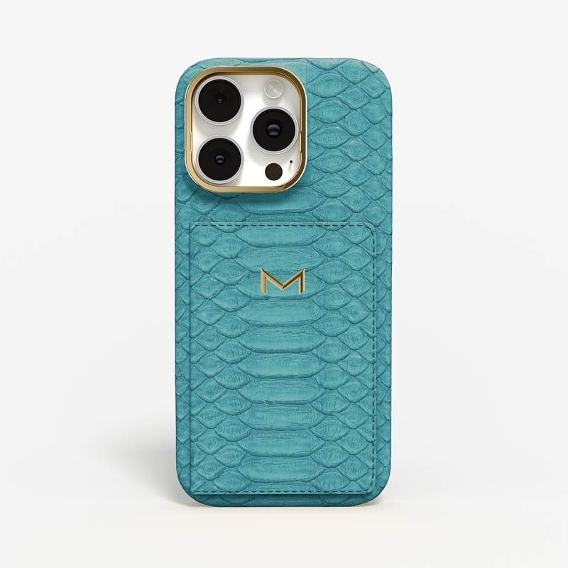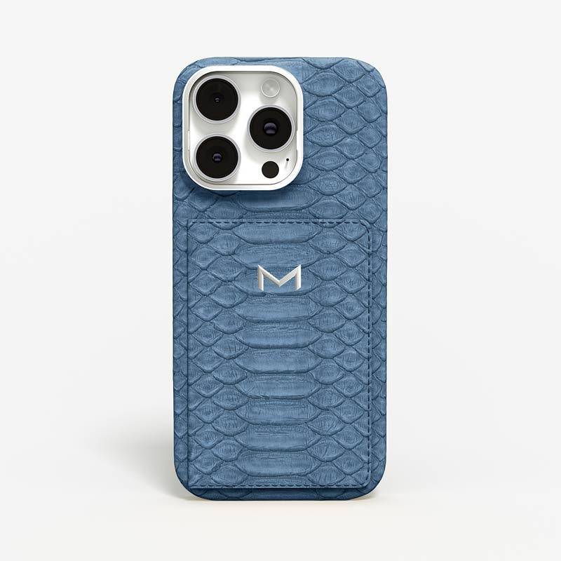 Exclusively made to order and entirely handcrafted, this iPhone 15 Pro case is sheathed in hand-selected python leather — chosen for its exotic texture, unique scale pattern, and bold presence. Inside, a soft Alcantara lining cradles your device, preserving its flawless condition. The hand-polished 316L stainless steel logo and camera ring reflect a commitment to detail and craftsmanship rarely seen.