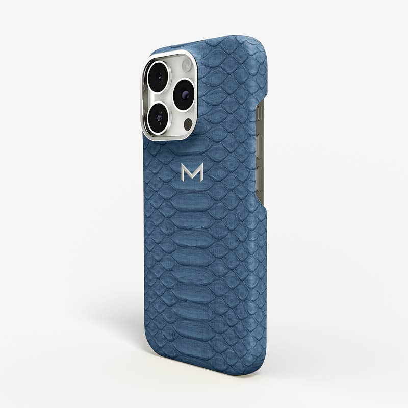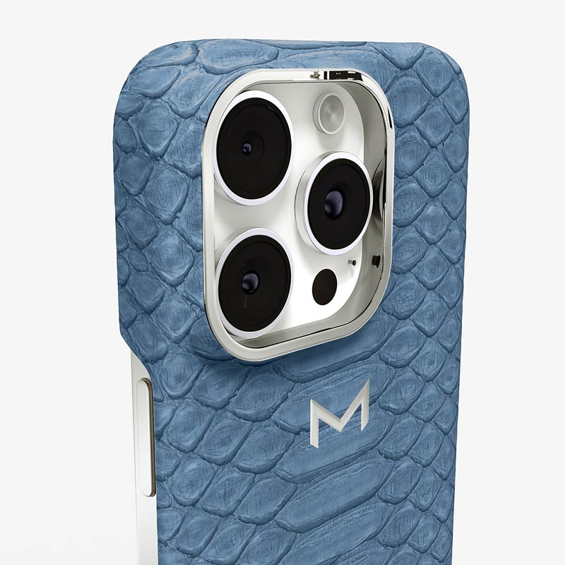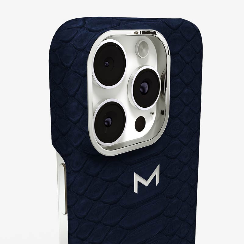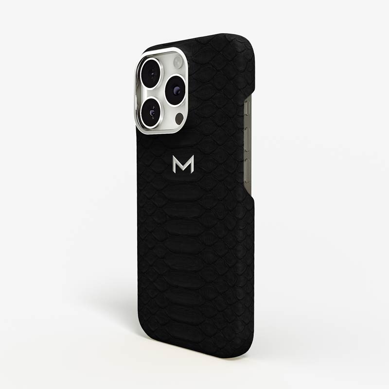 Exclusively made to order and entirely handcrafted, this iPhone 15 Pro Max case is sheathed in hand-selected python leather — chosen for its exotic texture, unique scale pattern, and bold presence. Inside, a soft Alcantara lining cradles your device, preserving its flawless condition. The hand-polished 316L stainless steel logo and camera ring reflect a commitment to detail and craftsmanship rarely seen.