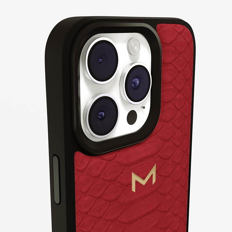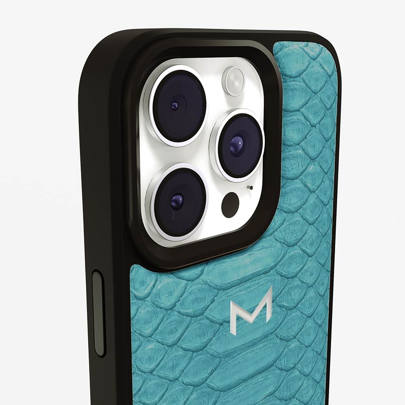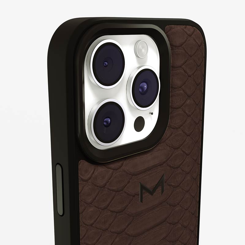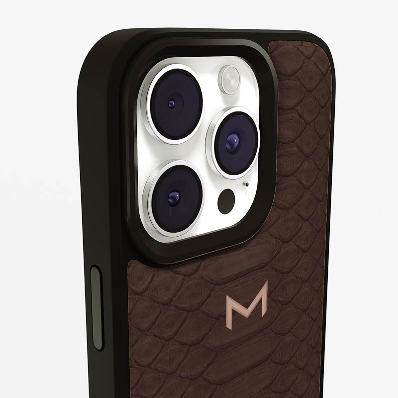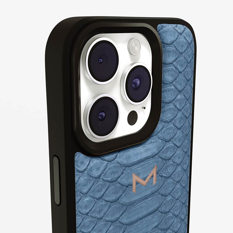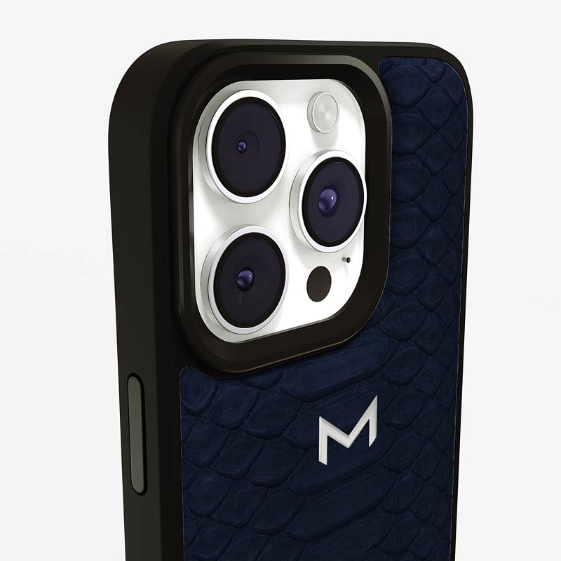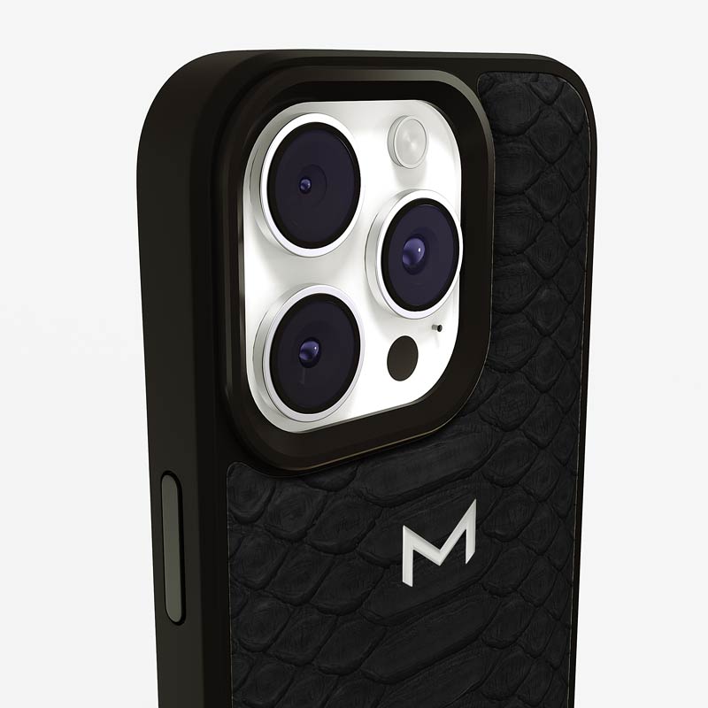 Exclusively made to order and entirely handcrafted, this iPhone 15 Pro Max case is sheathed in hand-selected python leather — chosen for its exotic texture, unique scale pattern, and bold presence. Inside, a soft Alcantara lining cradles your device, preserving its flawless condition. The hand-polished 316L stainless steel logo and camera ring reflect a commitment to detail and craftsmanship rarely seen.