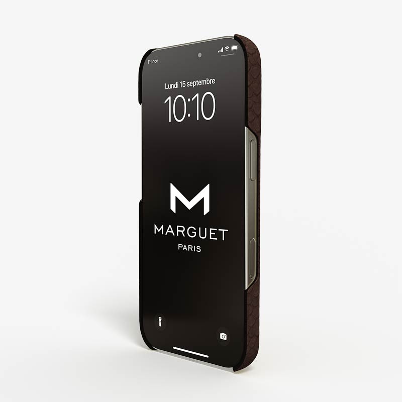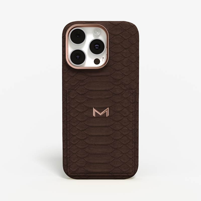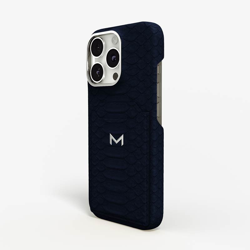 Exclusively made to order and entirely handcrafted, this iPhone 16 Pro case is sheathed in hand-selected python leather — chosen for its exotic texture, unique scale pattern, and bold presence. Inside, a soft Alcantara lining cradles your device, preserving its flawless condition. The hand-polished 316L stainless steel logo and camera ring reflect a commitment to detail and craftsmanship rarely seen.