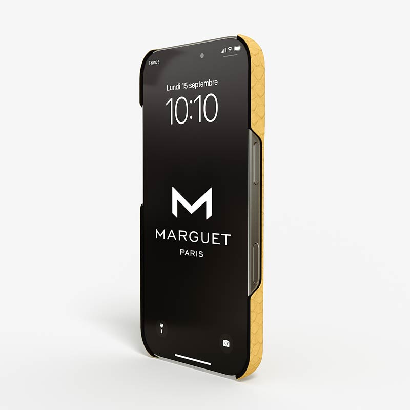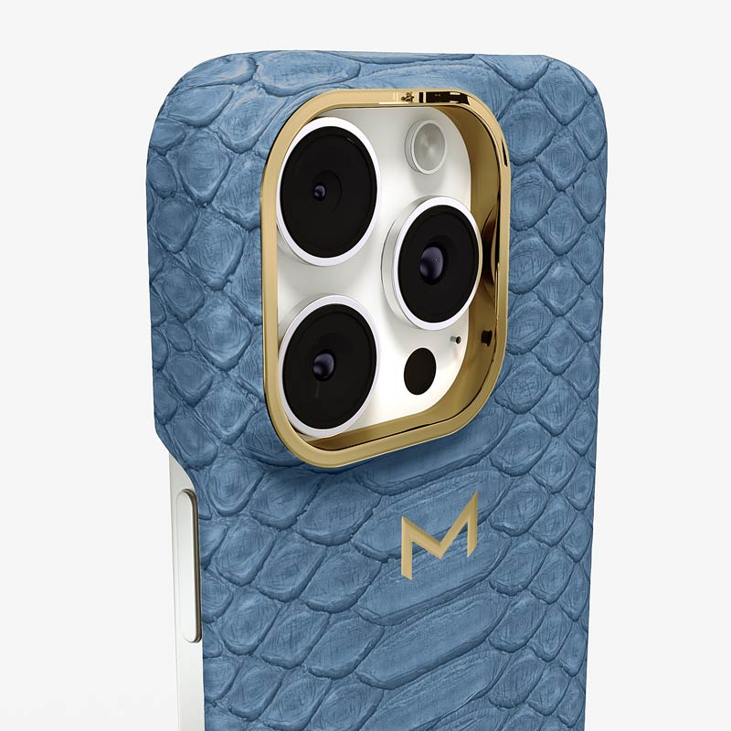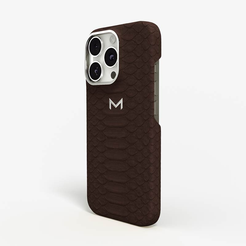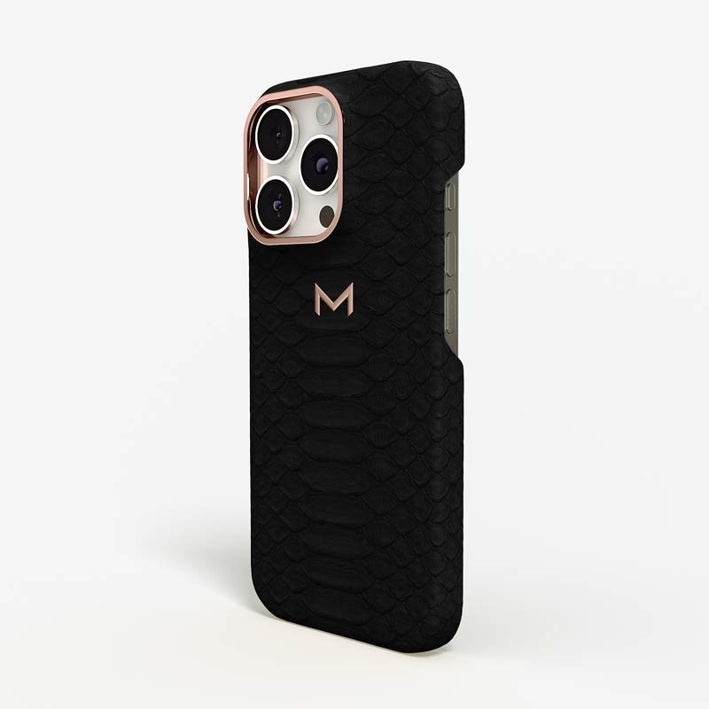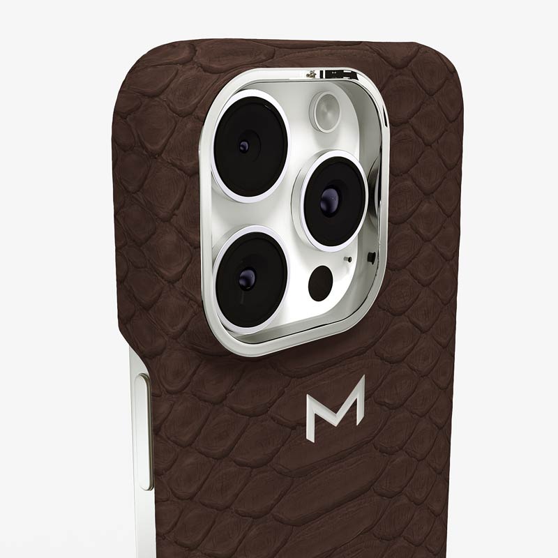 Exclusively made to order and entirely handcrafted, this iPhone 16 Pro case is sheathed in hand-selected python leather — chosen for its exotic texture, unique scale pattern, and bold presence. Inside, a soft Alcantara lining cradles your device, preserving its flawless condition. The hand-polished 316L stainless steel logo and camera ring reflect a commitment to detail and craftsmanship rarely seen.