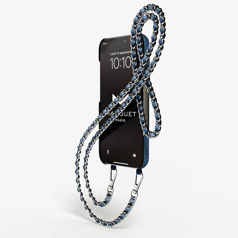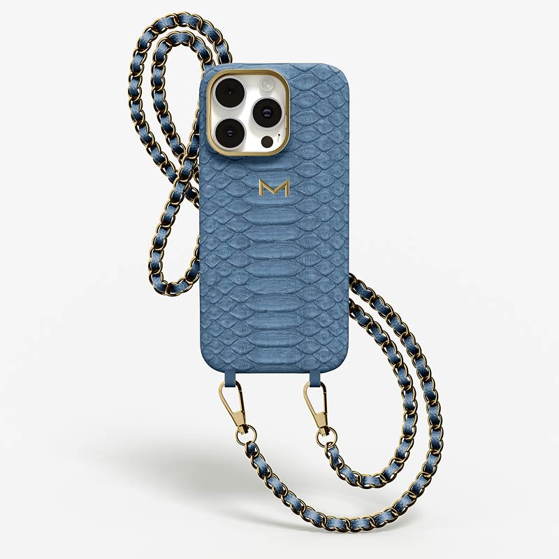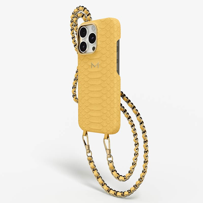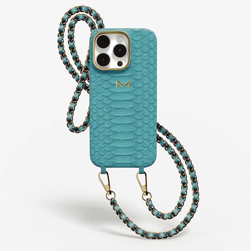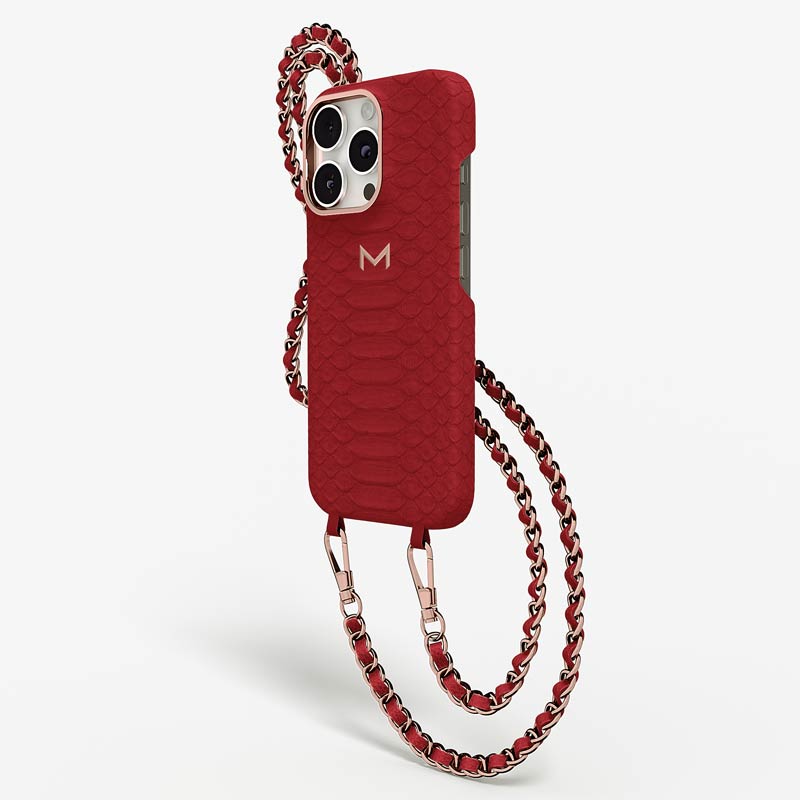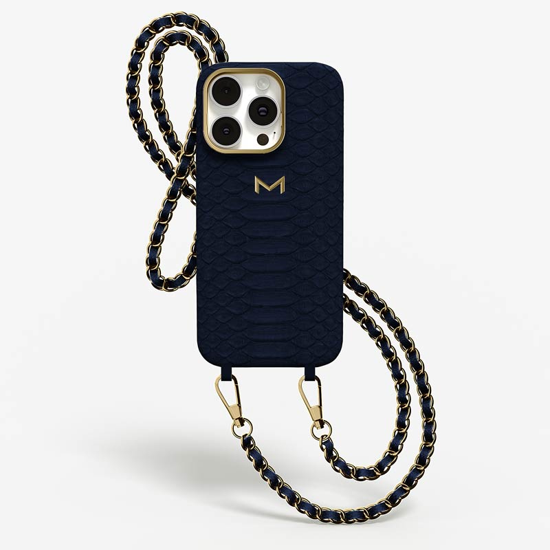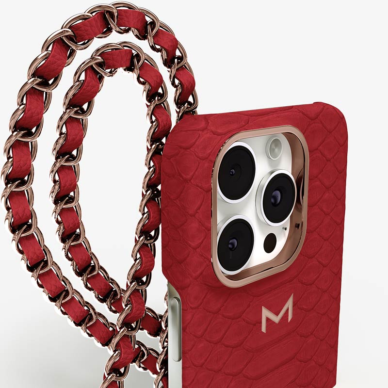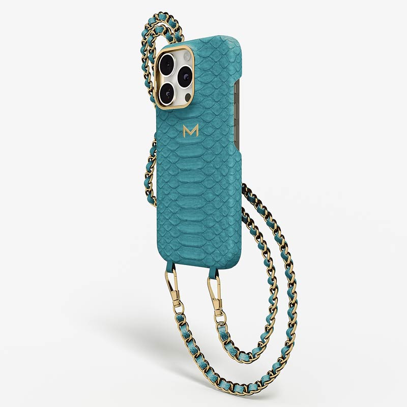Exclusively made to order and entirely handcrafted, this iPhone 16 Pro Max case is sheathed in hand-selected python leather — chosen for its exotic texture, unique scale pattern, and bold presence. Inside, a soft Alcantara lining cradles your device, preserving its flawless condition. The hand-polished 316L stainless steel logo and leather-interlaced metal chain reflect a commitment to detail and craftsmanship rarely seen.