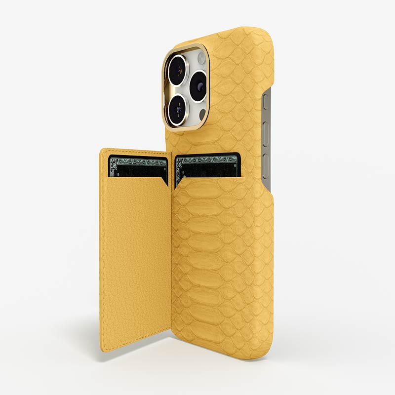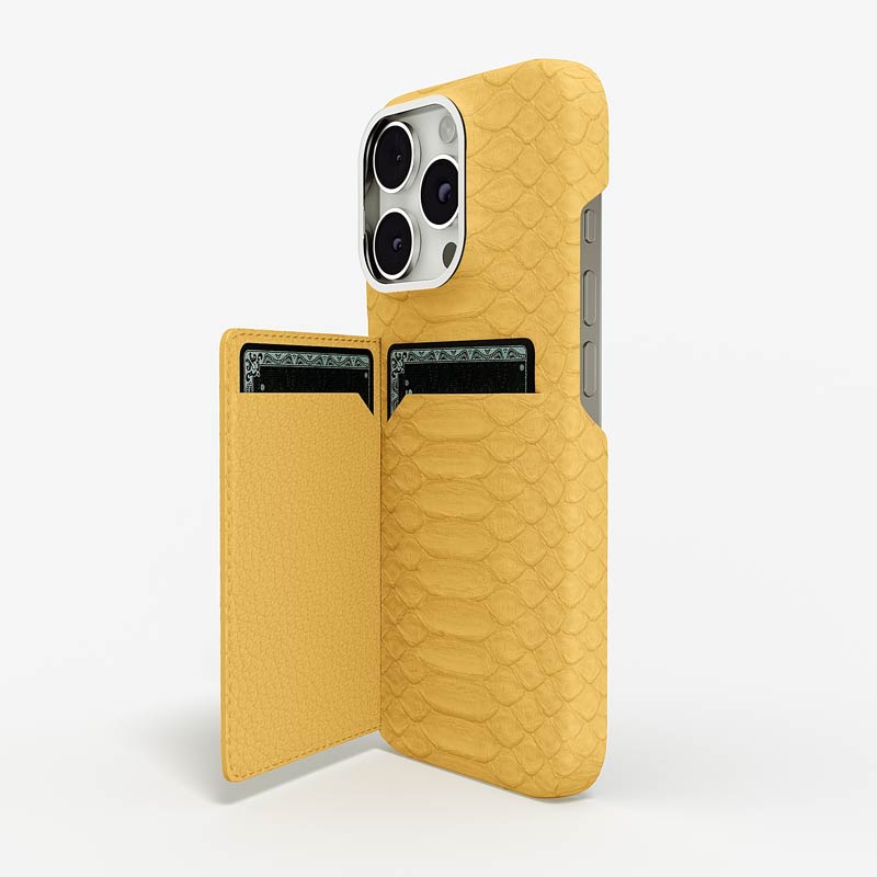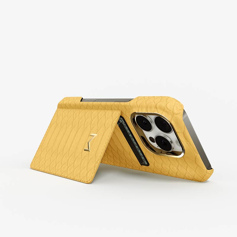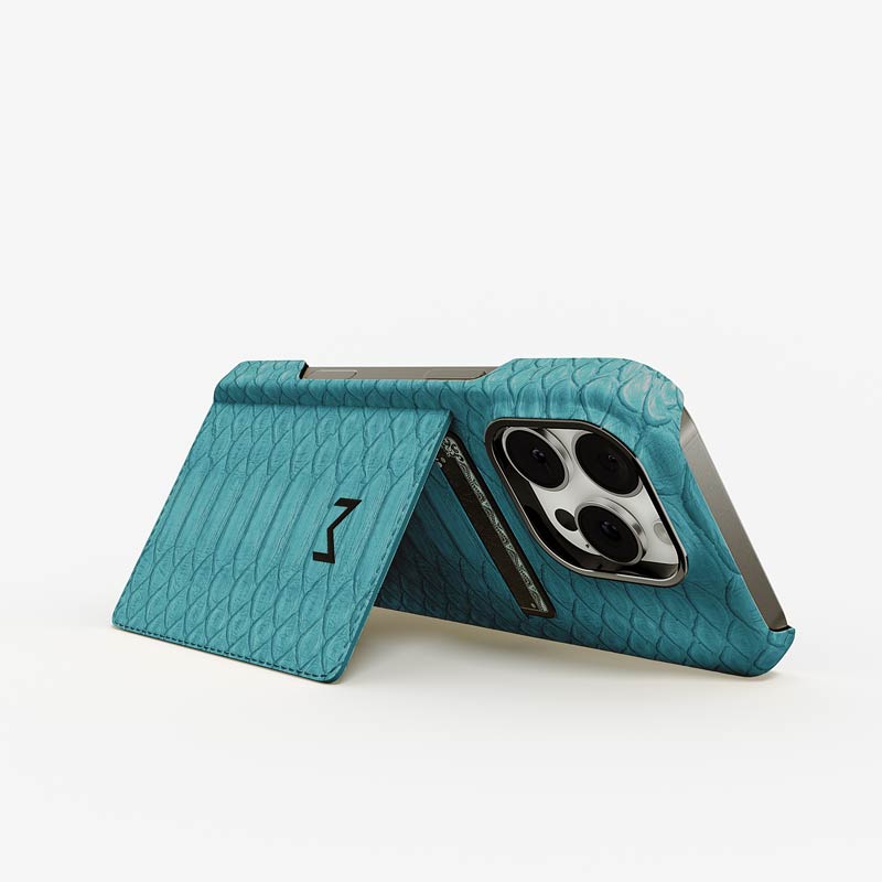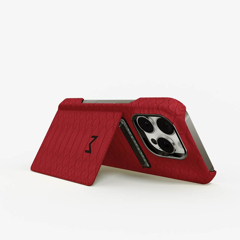 Exclusively made to order and entirely handcrafted, this iPhone 16 Pro Max case is sheathed in hand-selected python leather — chosen for its exotic texture, unique scale pattern, and bold presence. Inside, a soft Alcantara lining cradles your device, preserving its flawless condition. The hand-polished 316L stainless steel logo and camera ring reflect a commitment to detail and craftsmanship rarely seen.