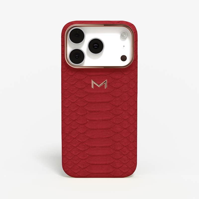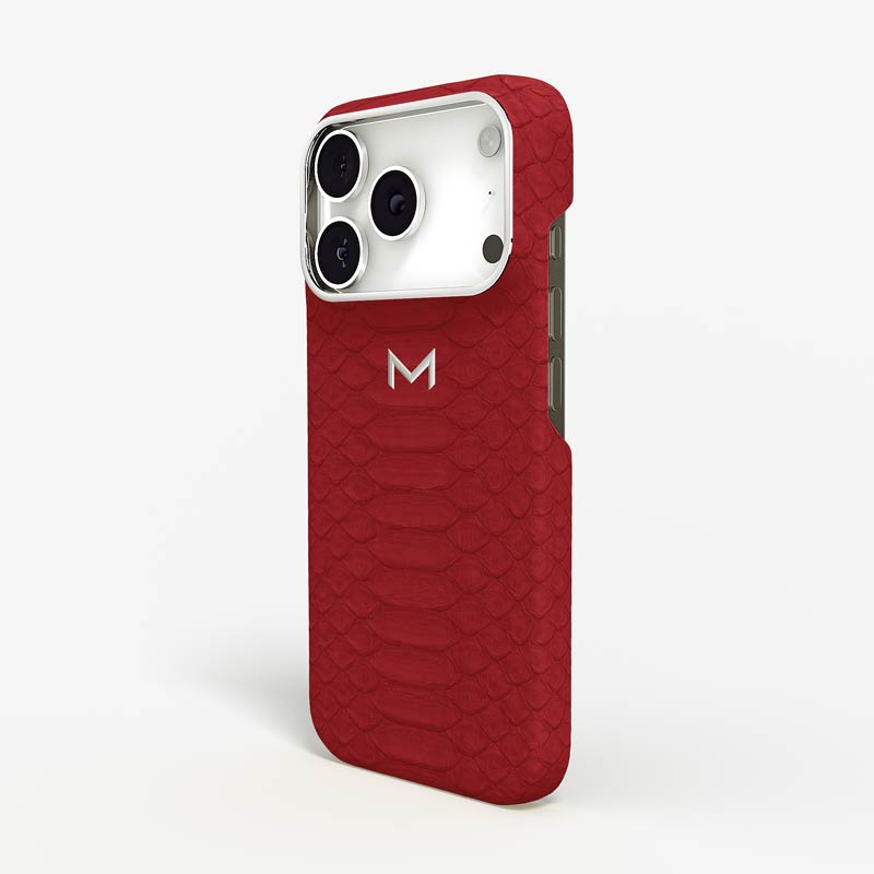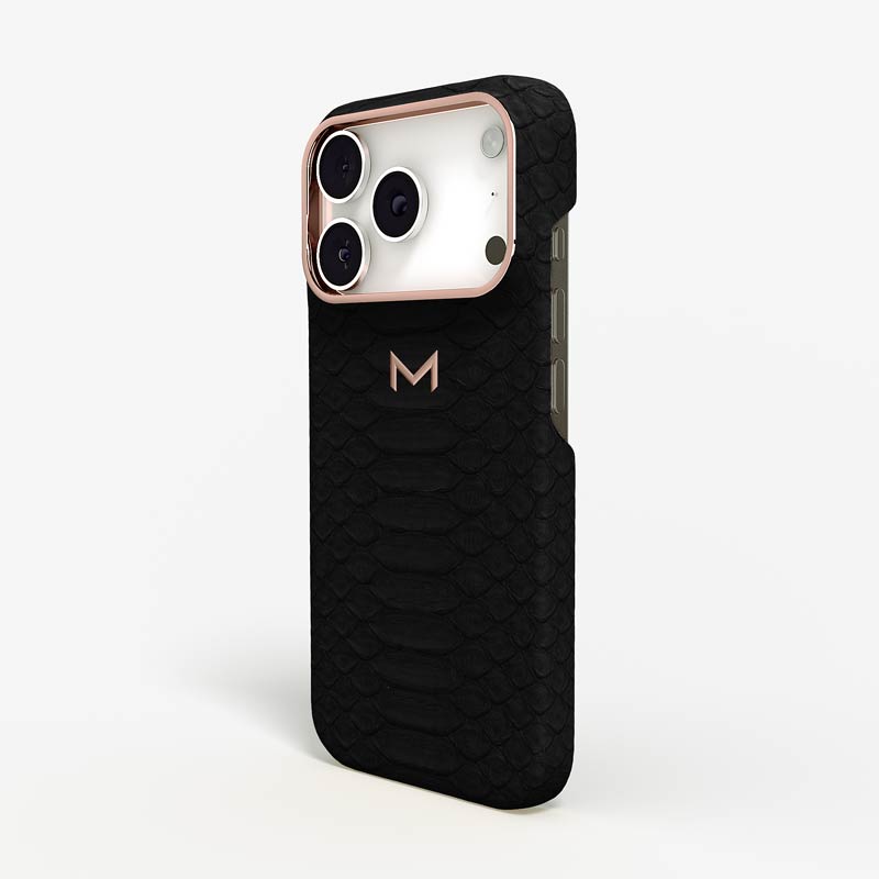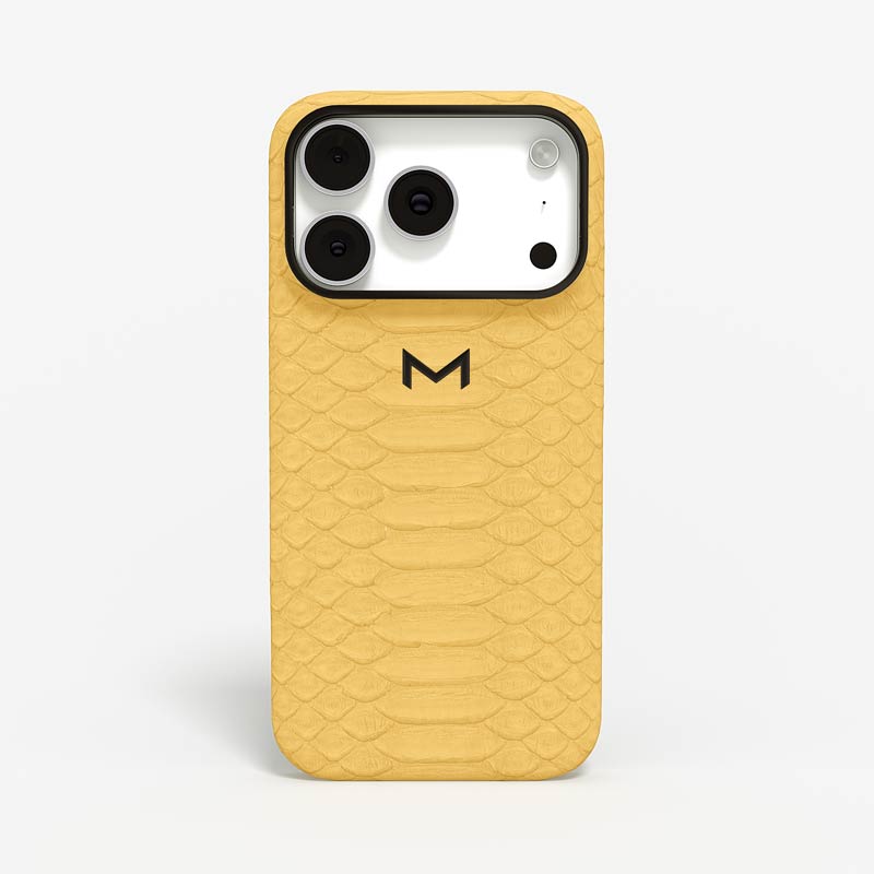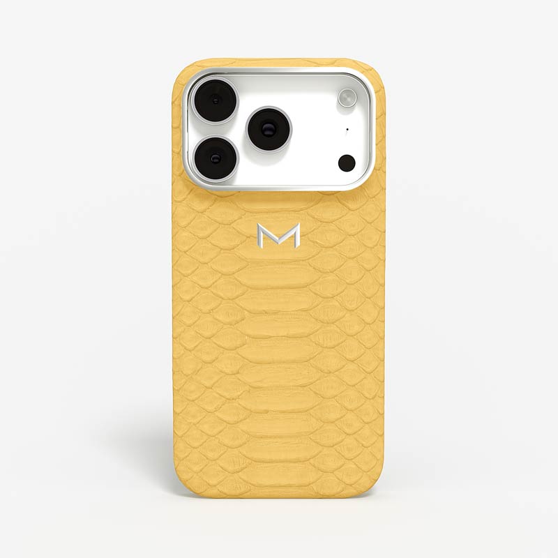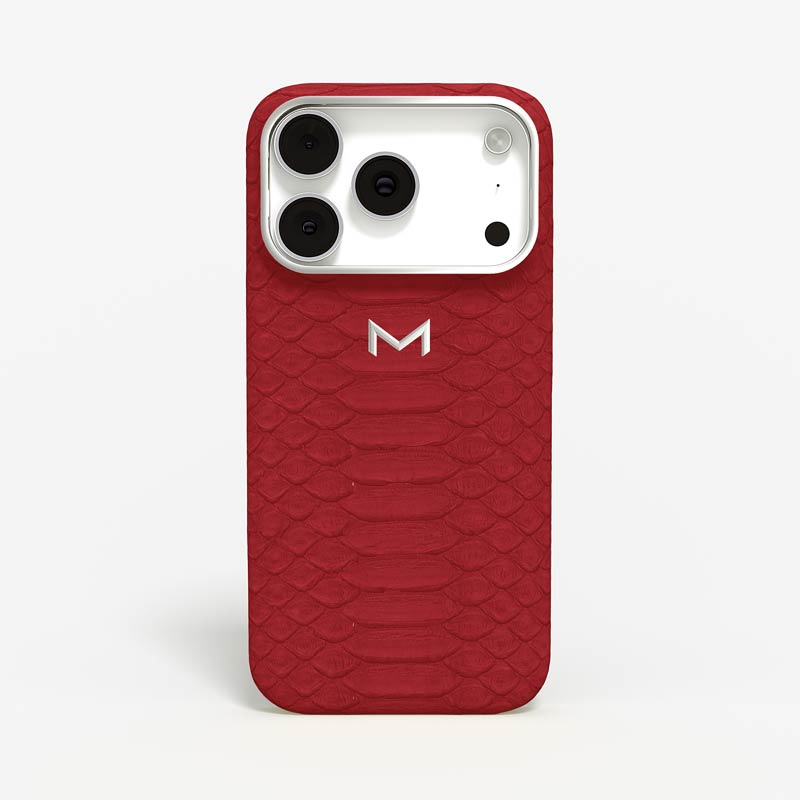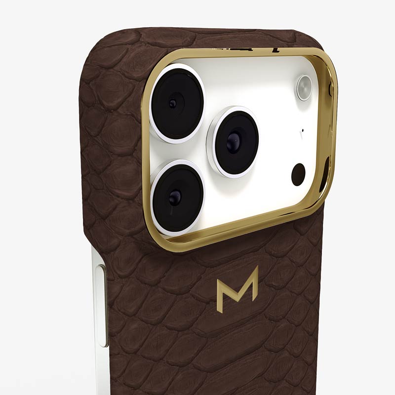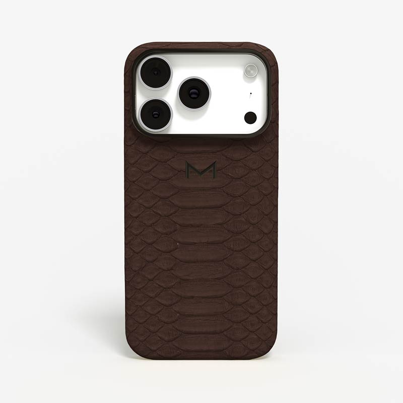 Exclusively made to order and entirely handcrafted, this iPhone 17 Pro case is sheathed in hand-selected python leather — chosen for its exotic texture, unique scale pattern, and bold presence. Inside, a soft Alcantara lining cradles your device, preserving its flawless condition. The hand-polished 316L stainless steel logo and camera ring reflect a commitment to detail and craftsmanship rarely seen.