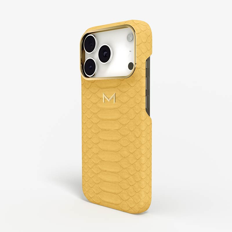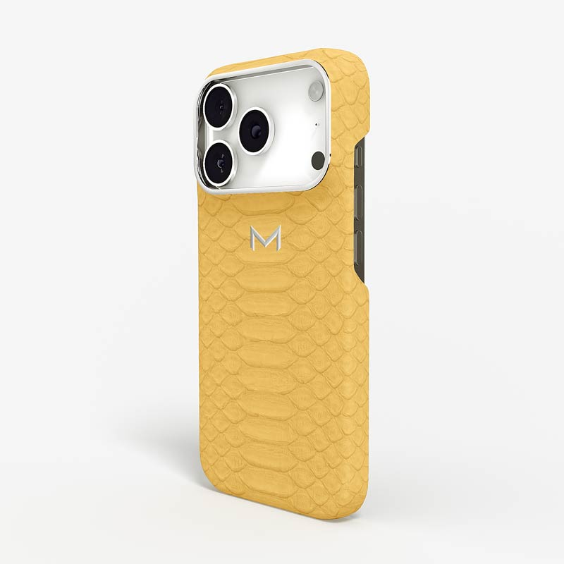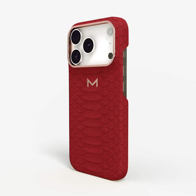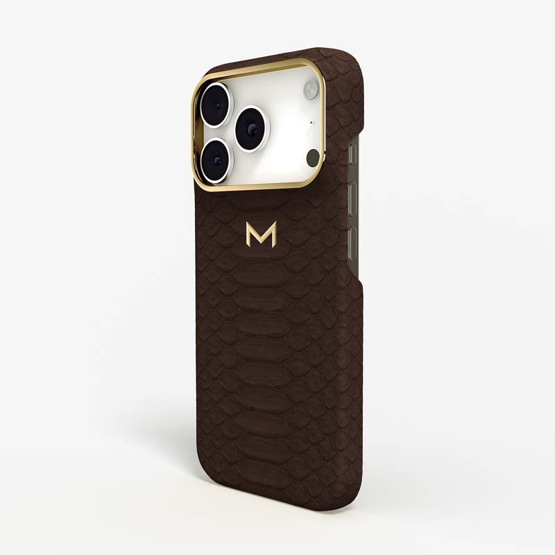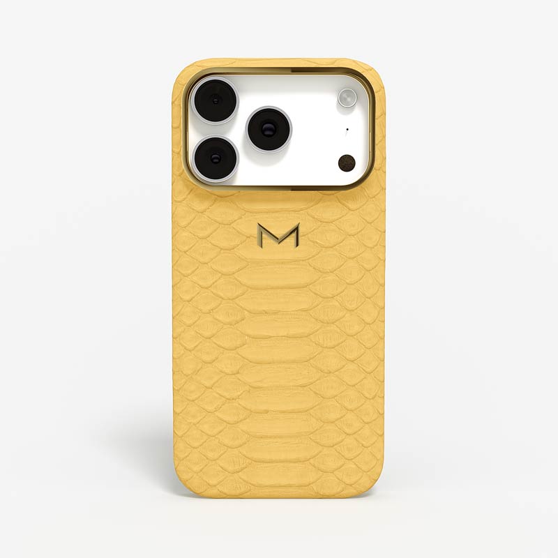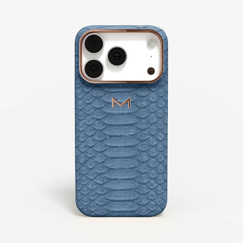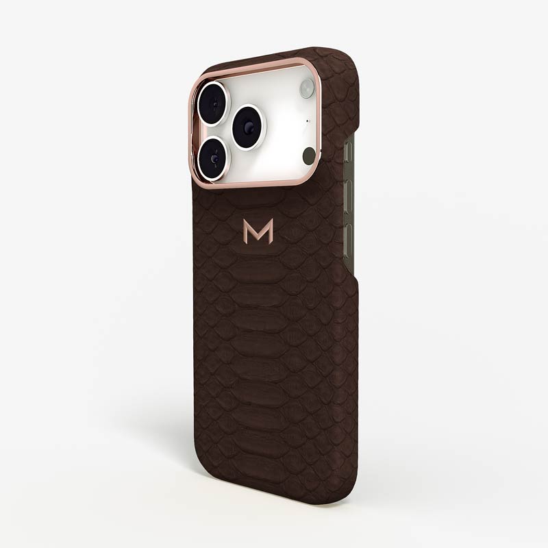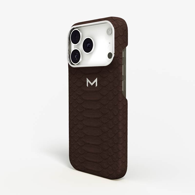 Exclusively made to order and entirely handcrafted, this iPhone 17 Pro case is sheathed in hand-selected python leather — chosen for its exotic texture, unique scale pattern, and bold presence. Inside, a soft Alcantara lining cradles your device, preserving its flawless condition. The hand-polished 316L stainless steel logo and camera ring reflect a commitment to detail and craftsmanship rarely seen.