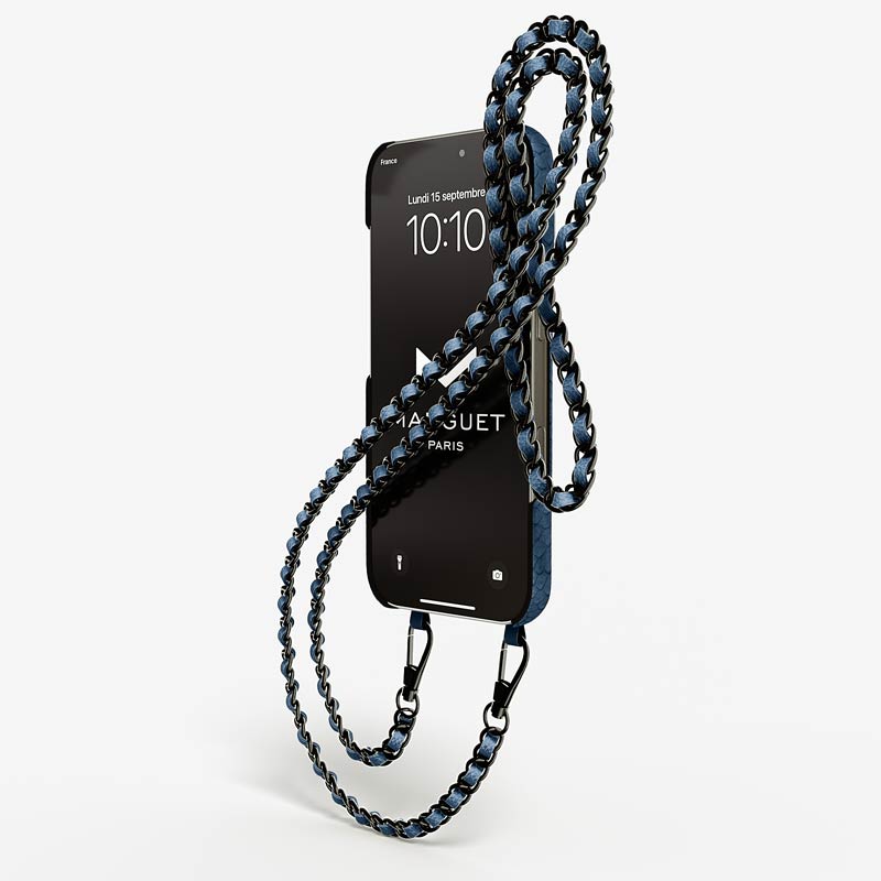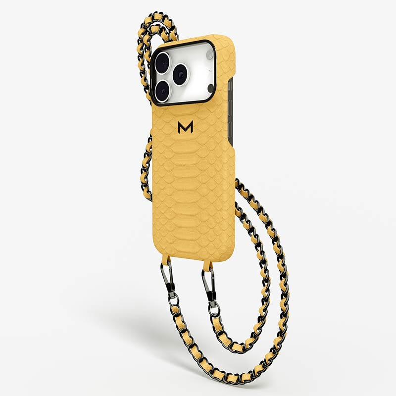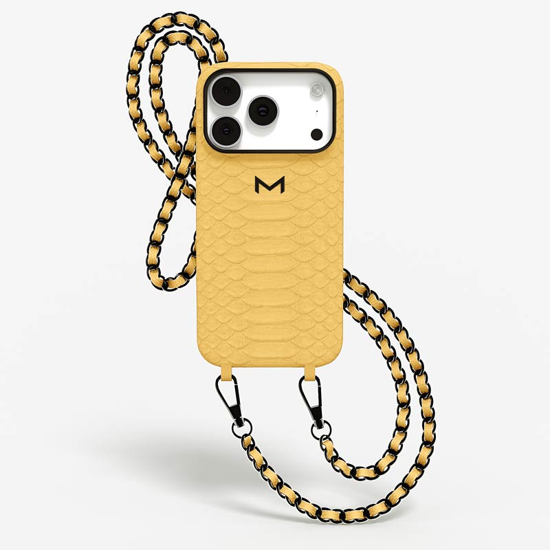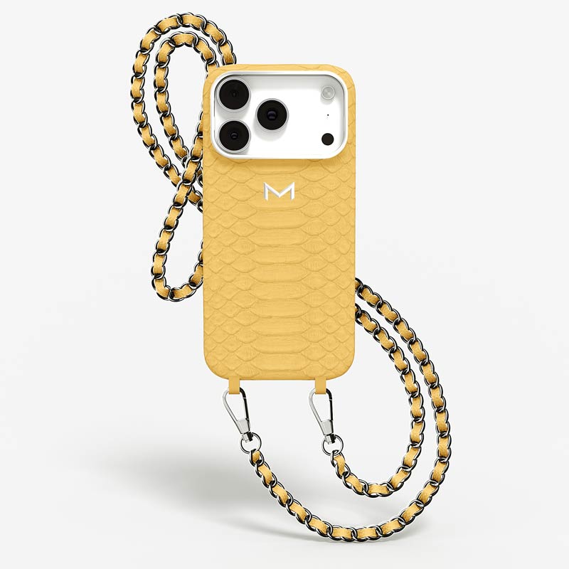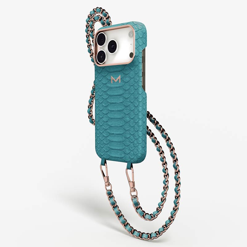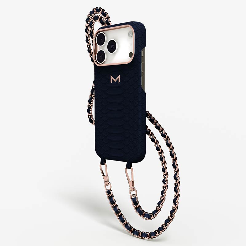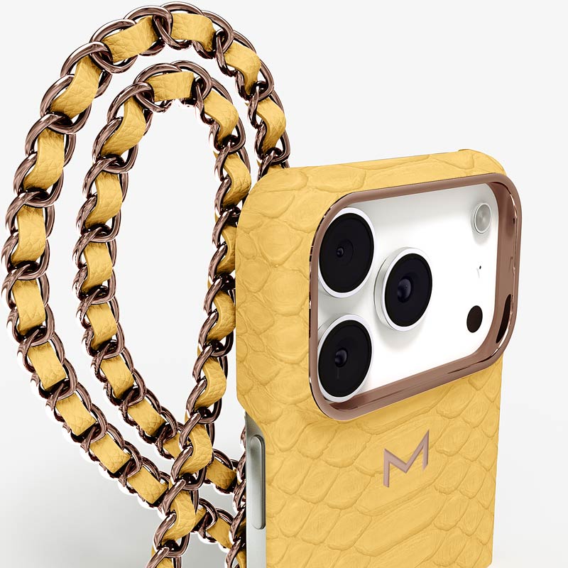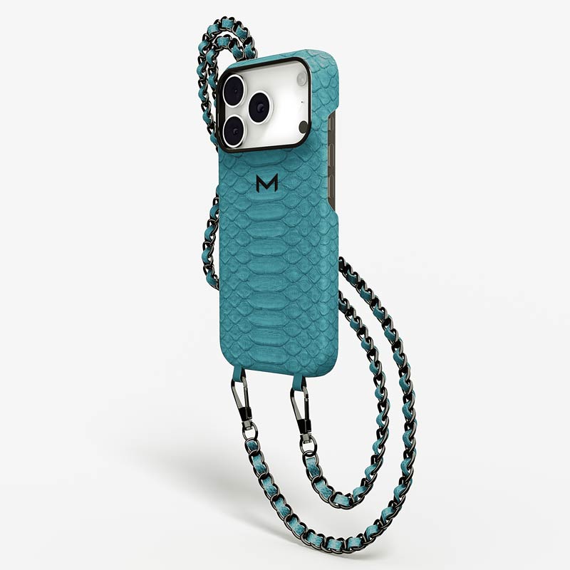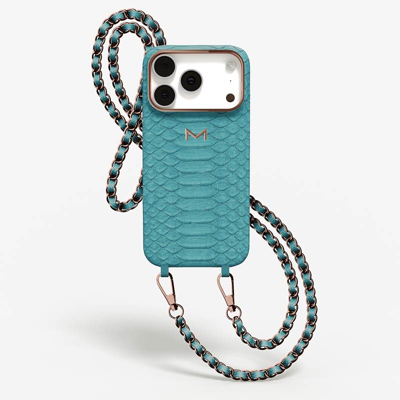 Exclusively made to order and entirely handcrafted, this iPhone 17 Pro case is sheathed in hand-selected python leather — chosen for its exotic texture, unique scale pattern, and bold presence. Inside, a soft Alcantara lining cradles your device, preserving its flawless condition. The hand-polished 316L stainless steel logo and leather-interlaced metal chain reflect a commitment to detail and craftsmanship rarely seen.