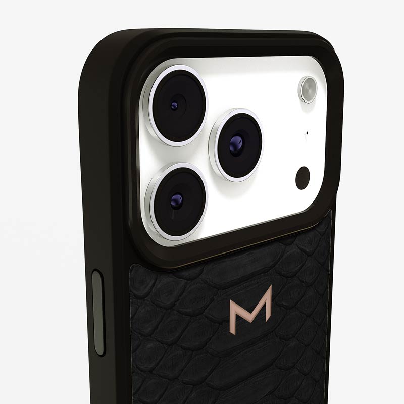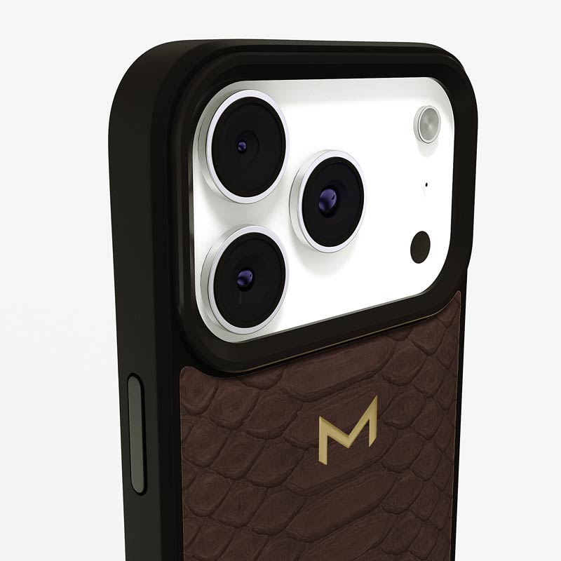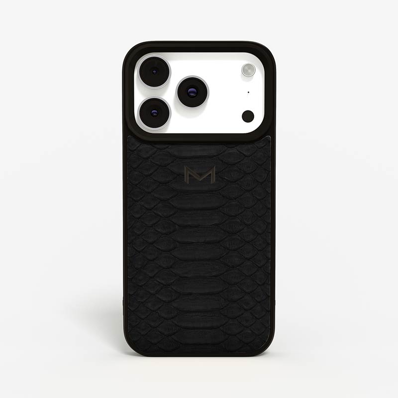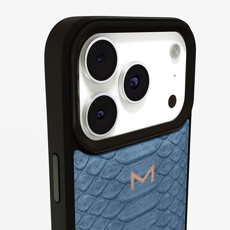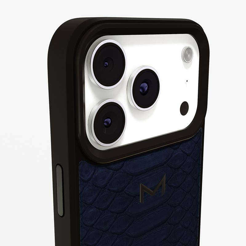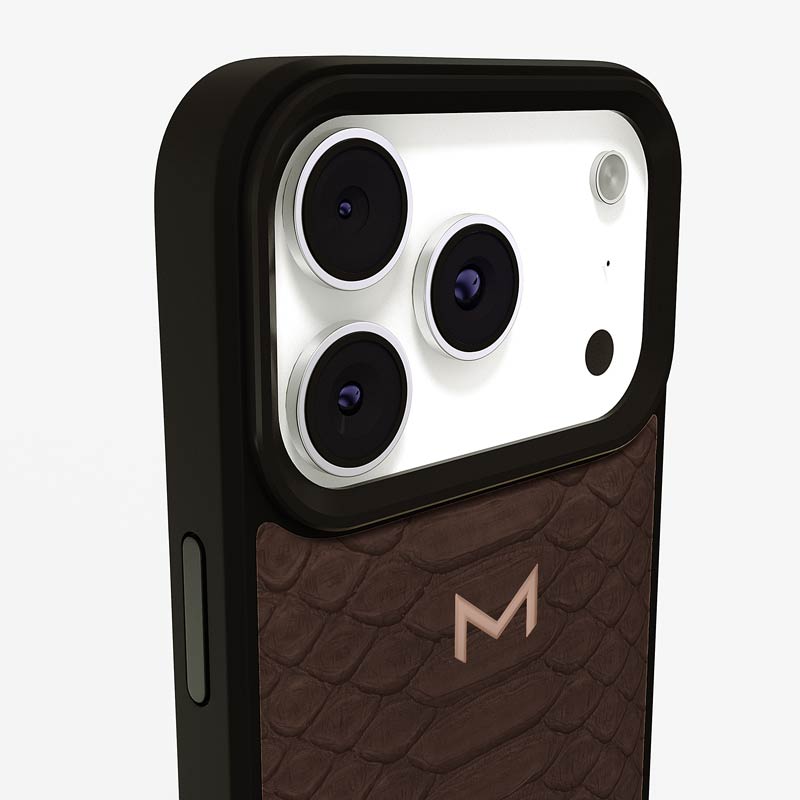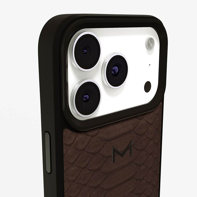 Exclusively made to order and entirely handcrafted, this iPhone 17 Pro case is sheathed in hand-selected python leather — chosen for its exotic texture, unique scale pattern, and bold presence. Inside, a soft Alcantara lining cradles your device, preserving its flawless condition. The hand-polished 316L stainless steel logo and camera ring reflect a commitment to detail and craftsmanship rarely seen.