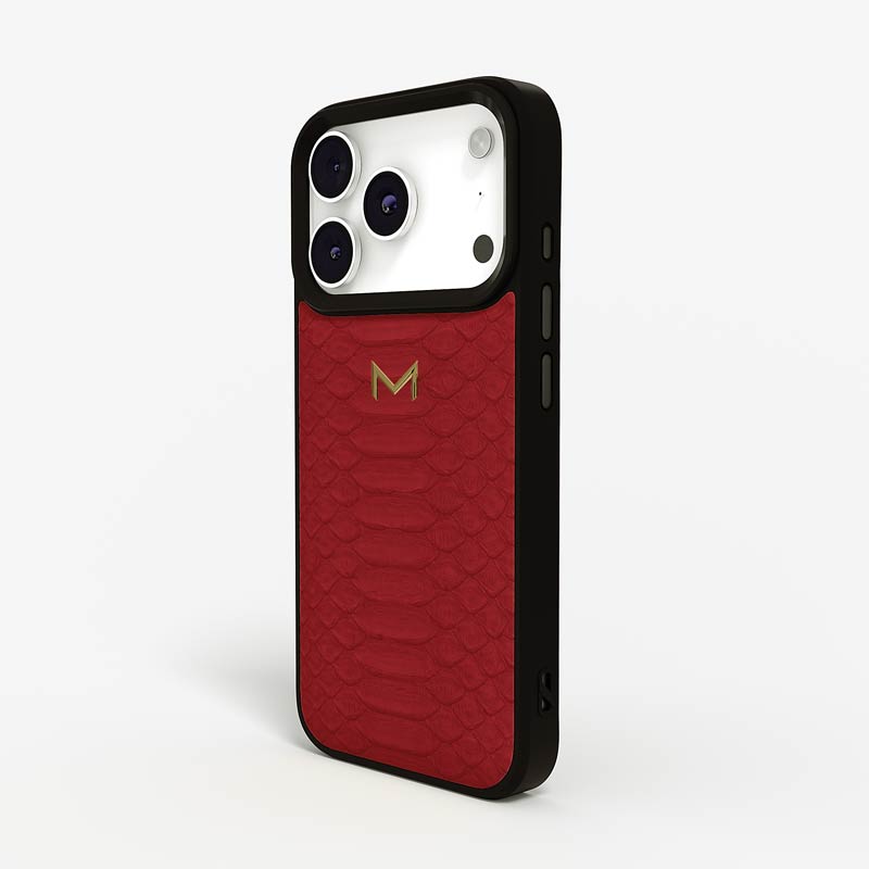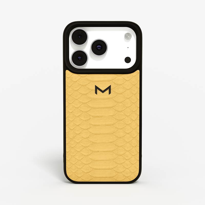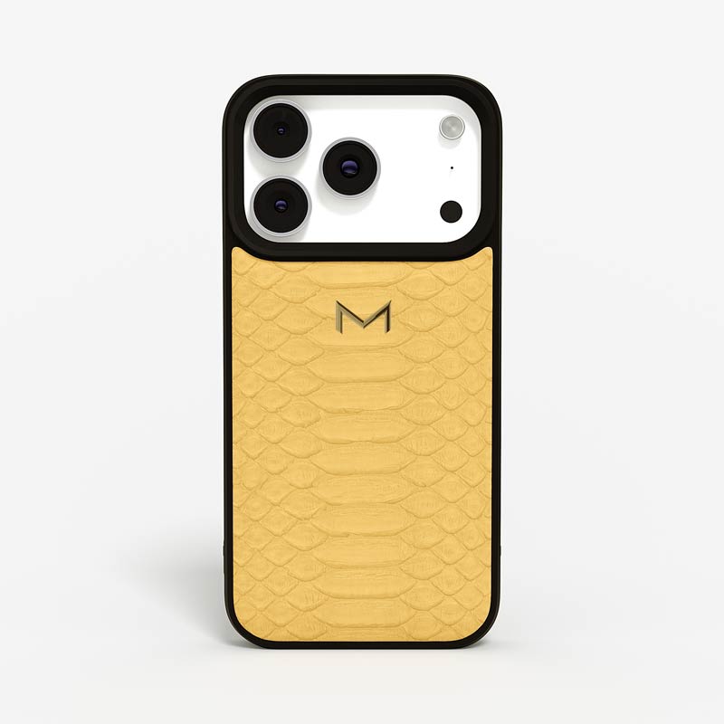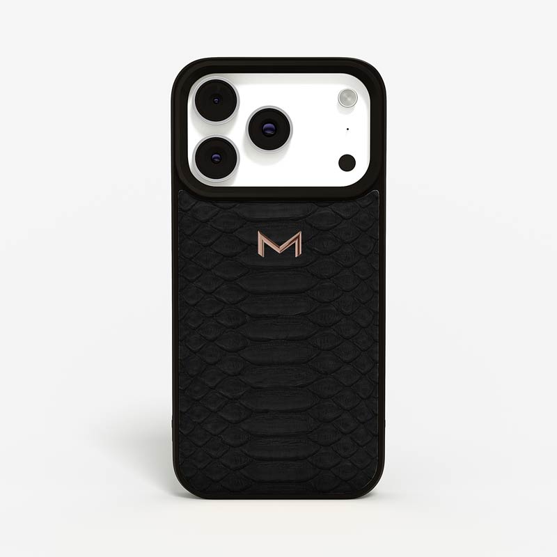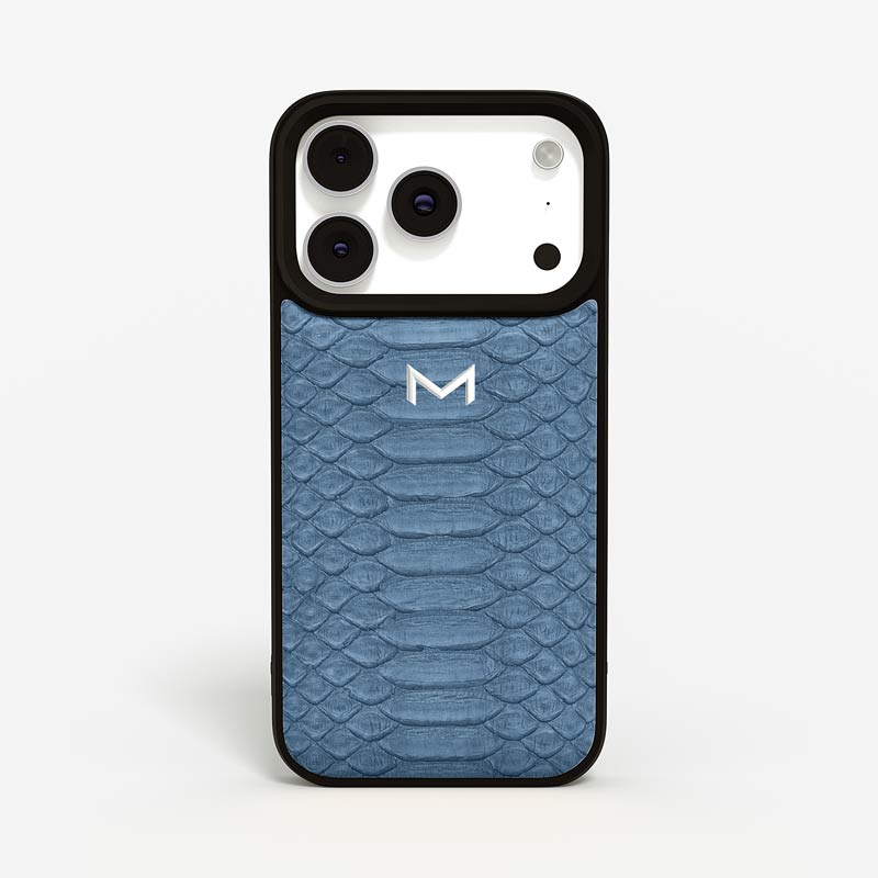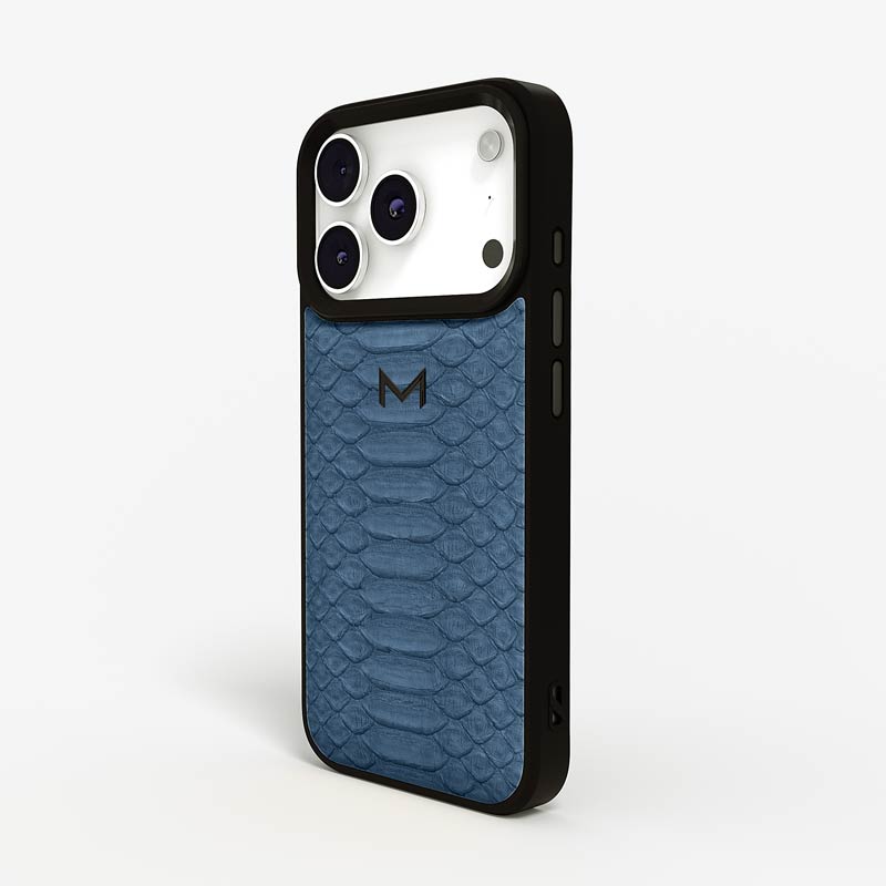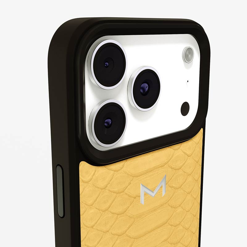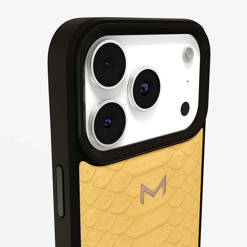 Exclusively made to order and entirely handcrafted, this iPhone 17 Pro case is sheathed in hand-selected python leather — chosen for its exotic texture, unique scale pattern, and bold presence. Inside, a soft Alcantara lining cradles your device, preserving its flawless condition. The hand-polished 316L stainless steel logo and camera ring reflect a commitment to detail and craftsmanship rarely seen.