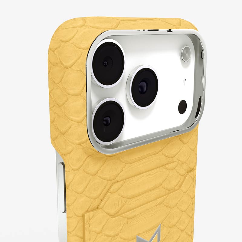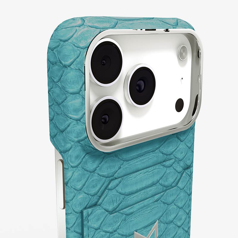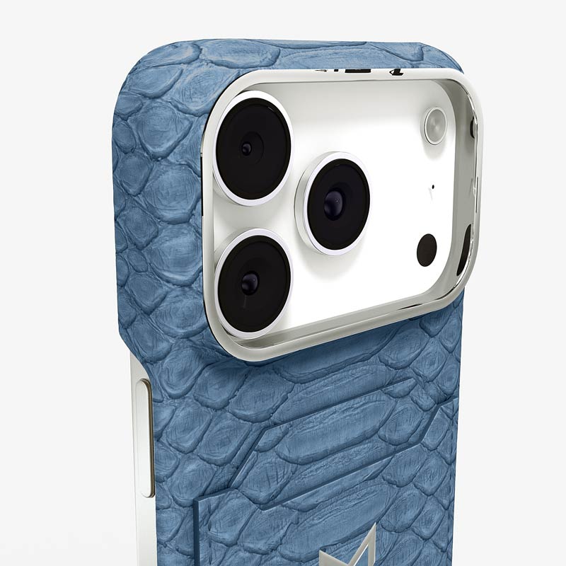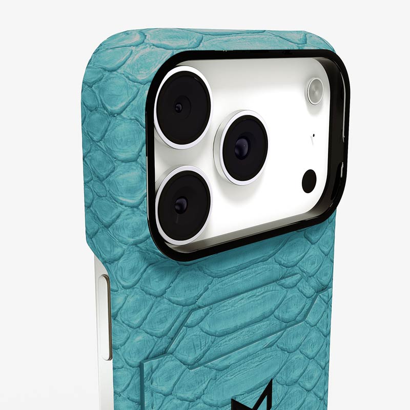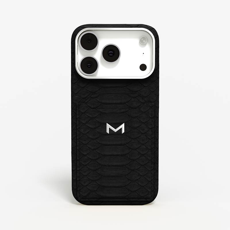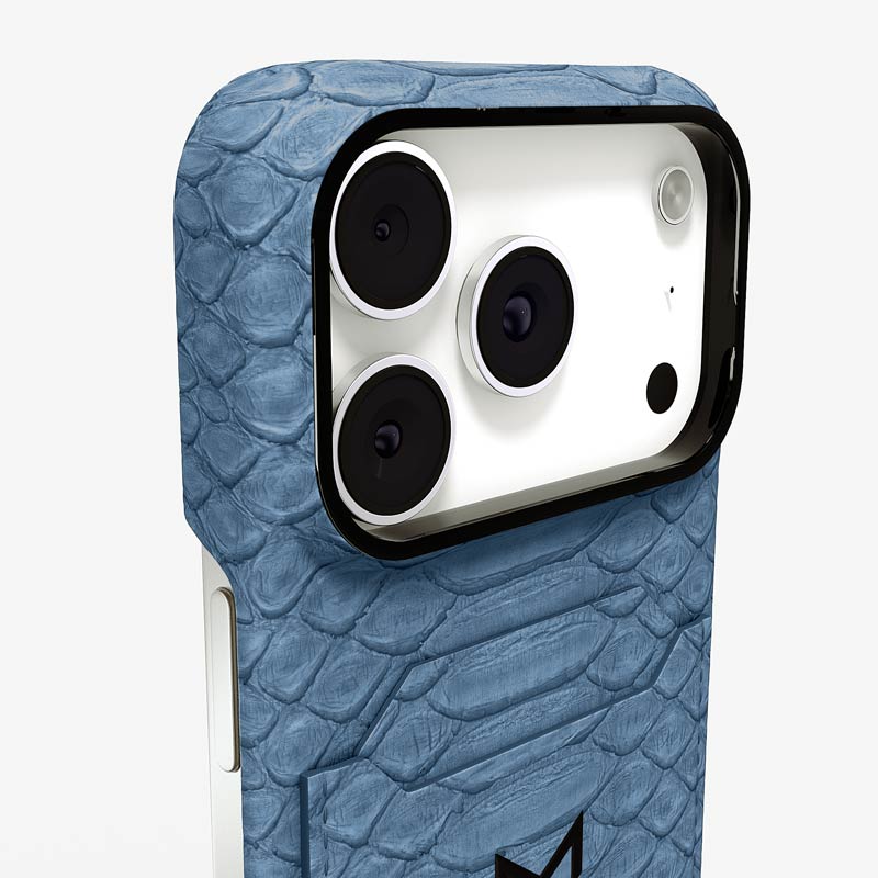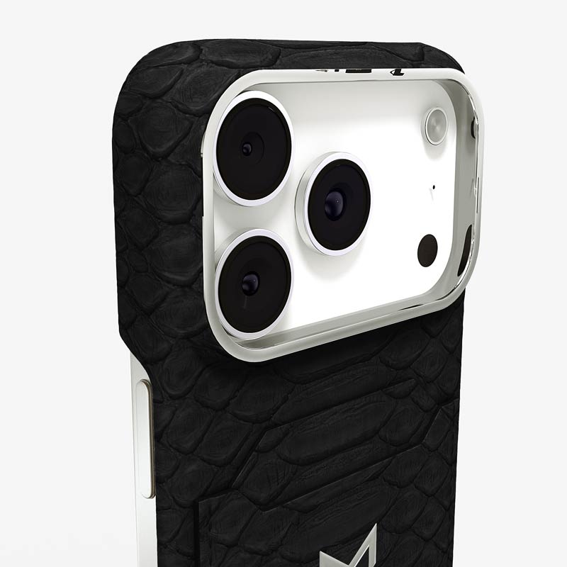 Exclusively made to order and entirely handcrafted, this iPhone 17 Pro Max case is sheathed in hand-selected python leather — chosen for its exotic texture, unique scale pattern, and bold presence. Inside, a soft Alcantara lining cradles your device, preserving its flawless condition. The hand-polished 316L stainless steel logo and camera ring reflect a commitment to detail and craftsmanship rarely seen.