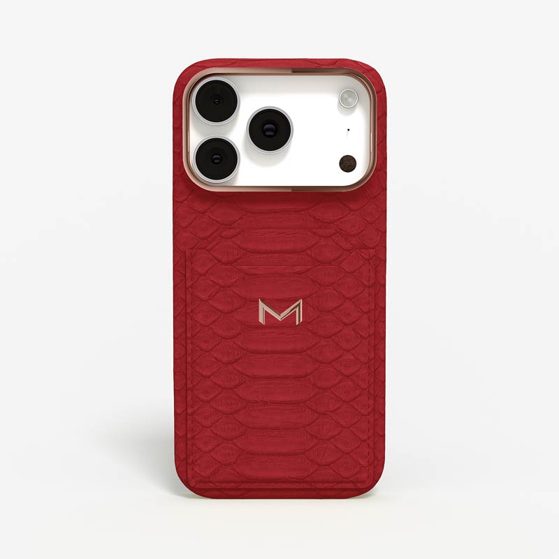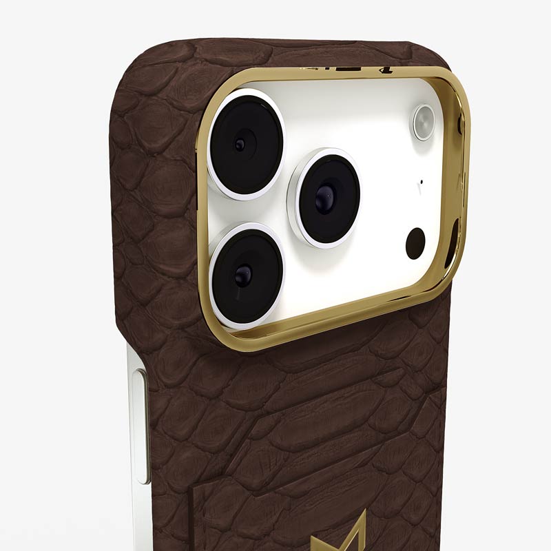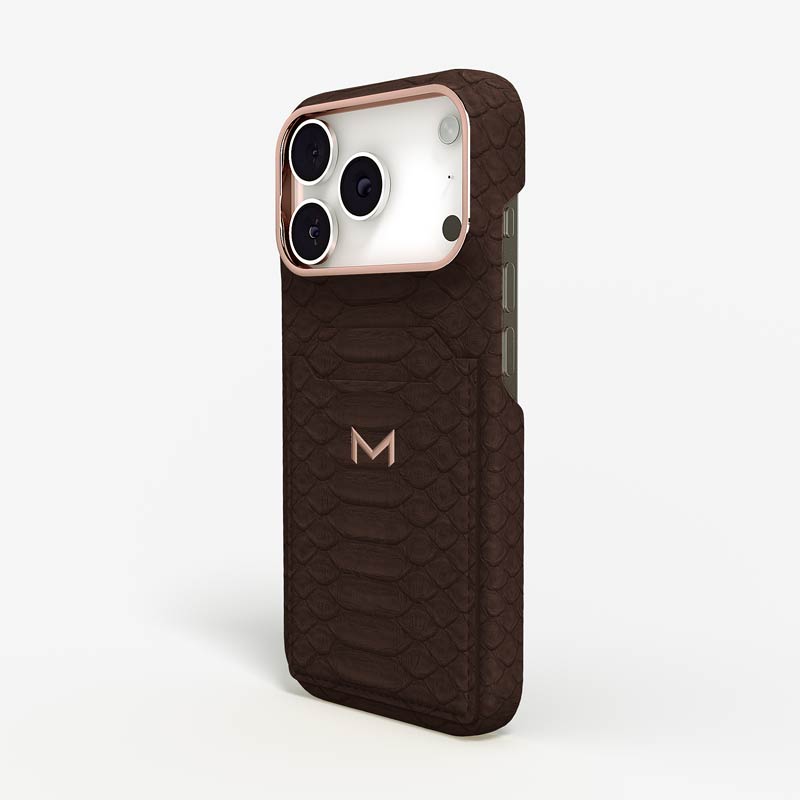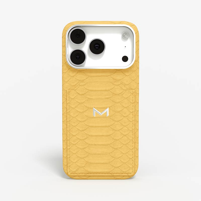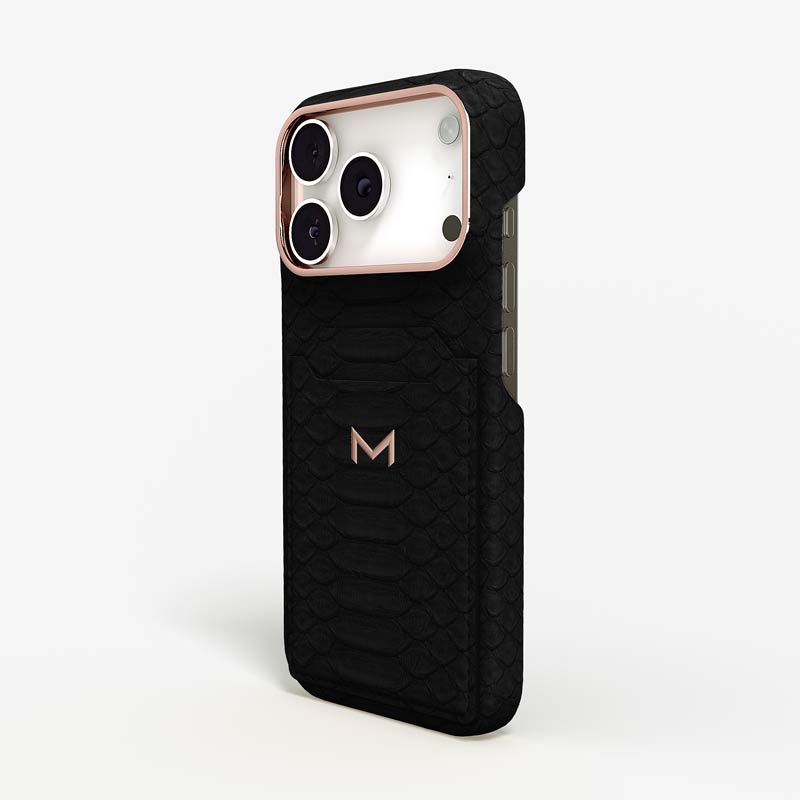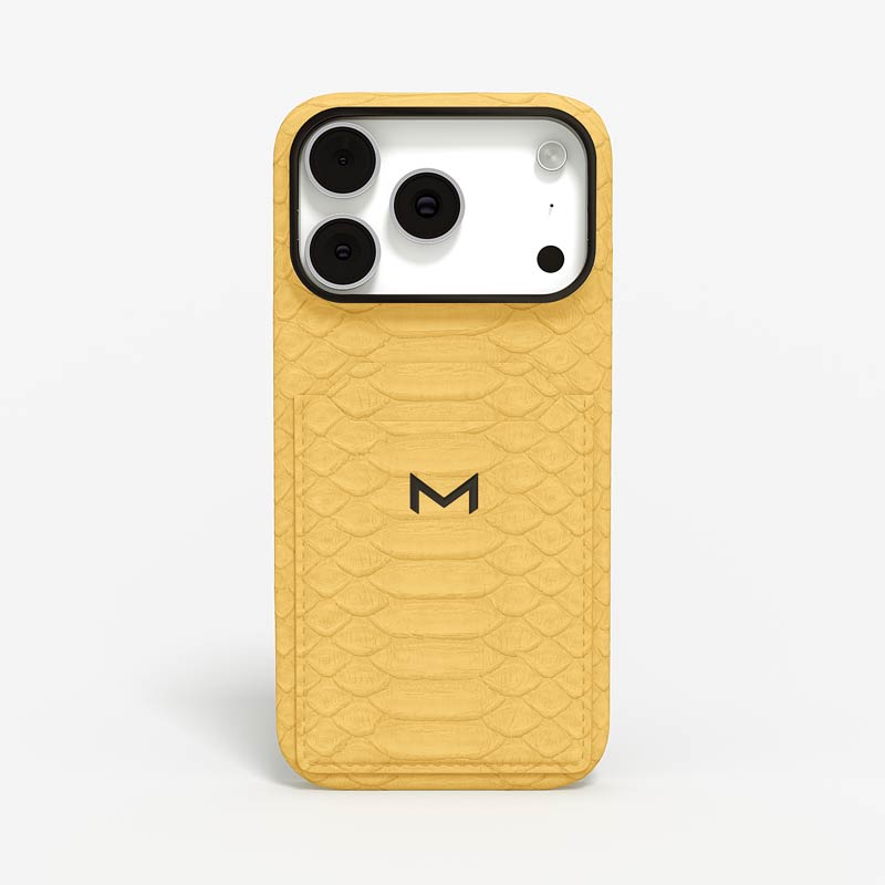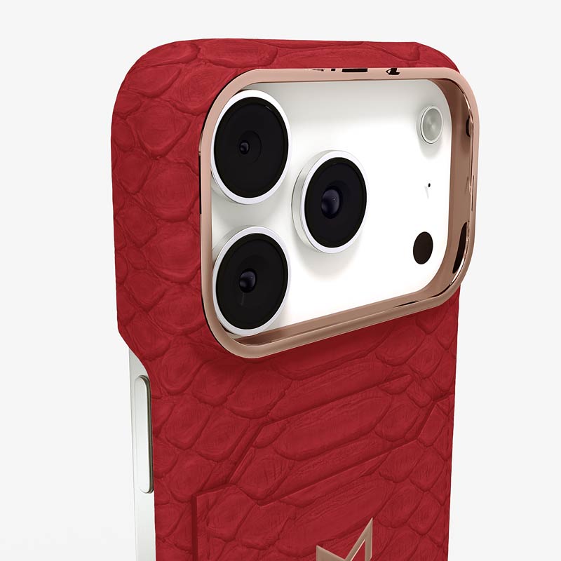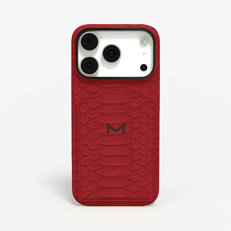 Exclusively made to order and entirely handcrafted, this iPhone 17 Pro Max case is sheathed in hand-selected python leather — chosen for its exotic texture, unique scale pattern, and bold presence. Inside, a soft Alcantara lining cradles your device, preserving its flawless condition. The hand-polished 316L stainless steel logo and camera ring reflect a commitment to detail and craftsmanship rarely seen.