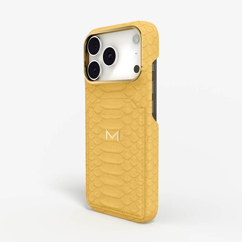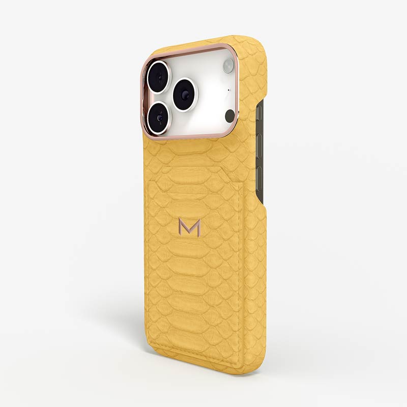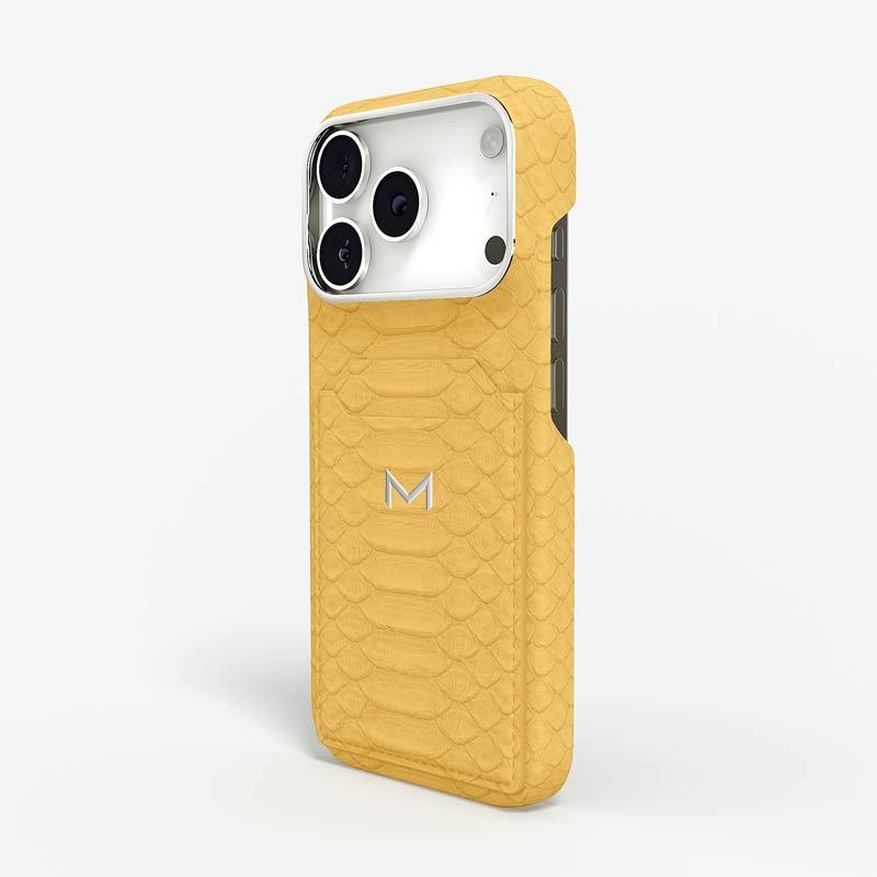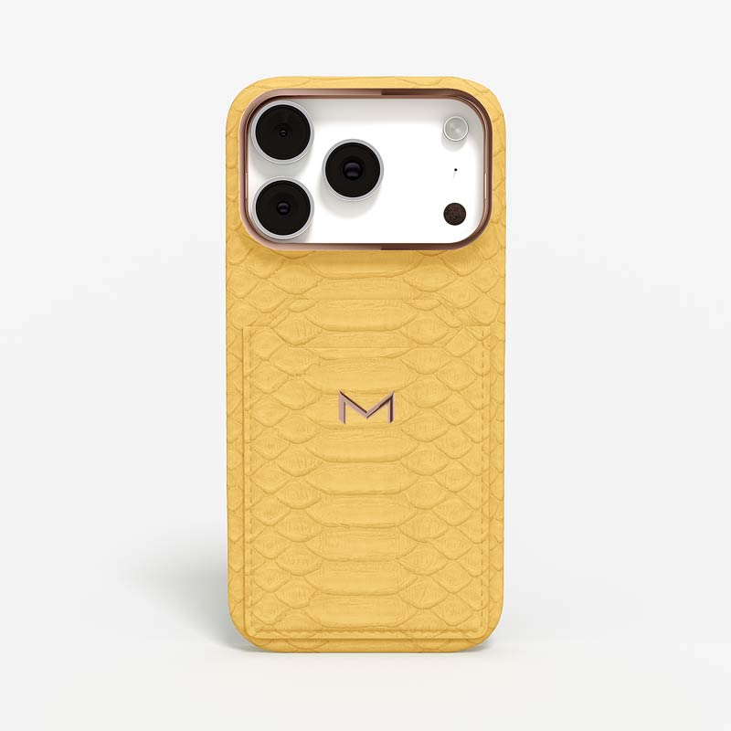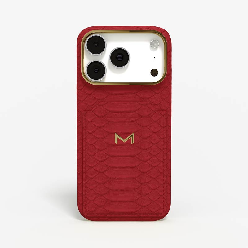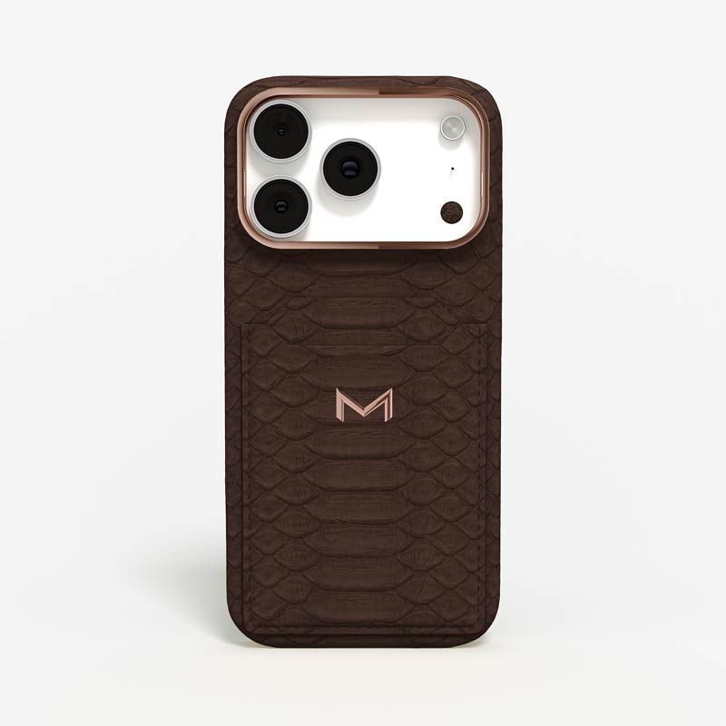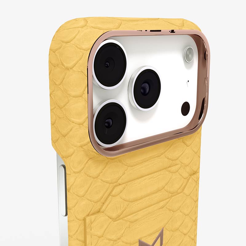 Exclusively made to order and entirely handcrafted, this iPhone 17 Pro Max case is sheathed in hand-selected python leather — chosen for its exotic texture, unique scale pattern, and bold presence. Inside, a soft Alcantara lining cradles your device, preserving its flawless condition. The hand-polished 316L stainless steel logo and camera ring reflect a commitment to detail and craftsmanship rarely seen.