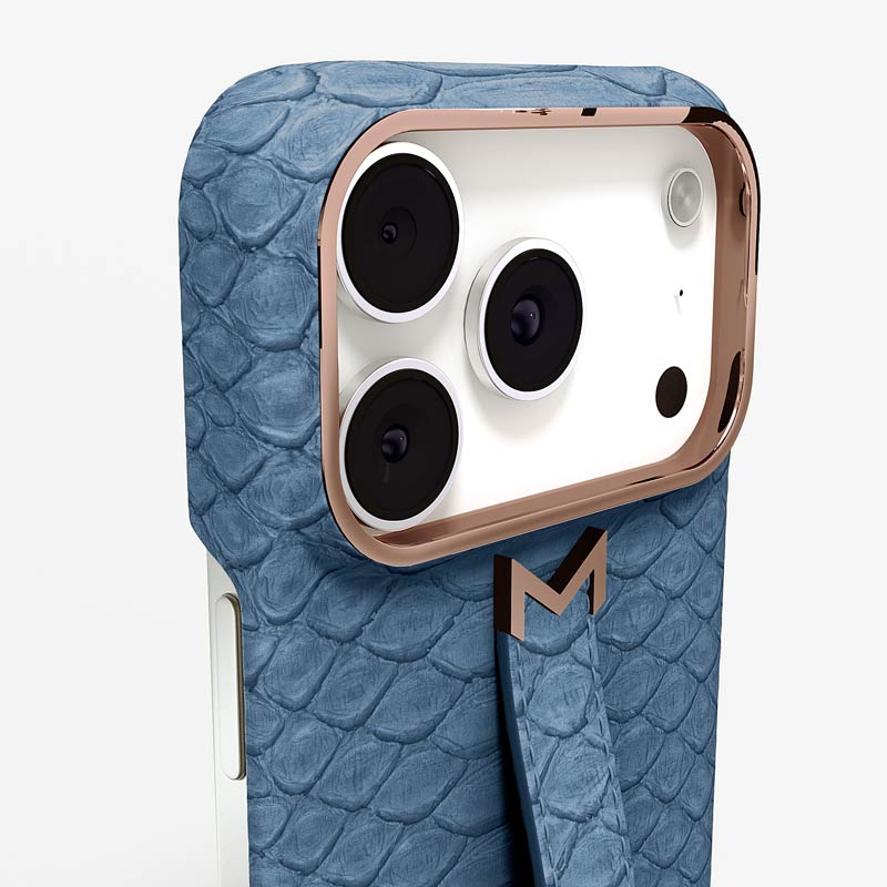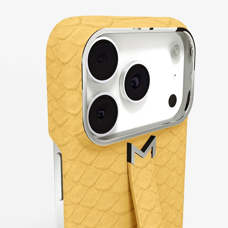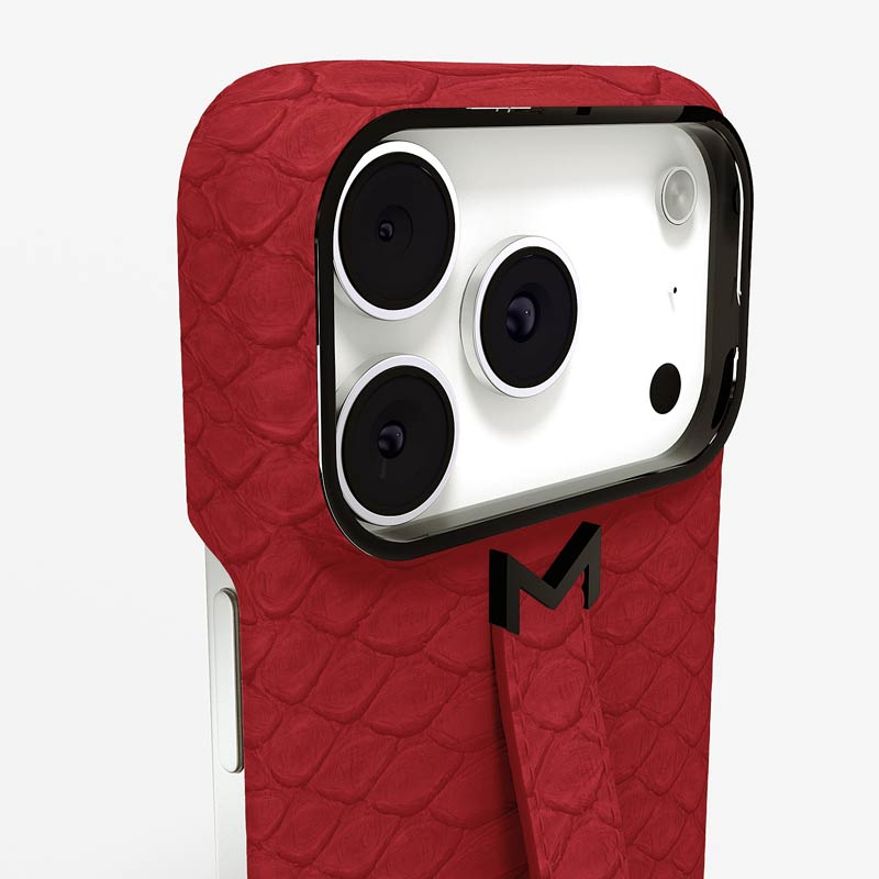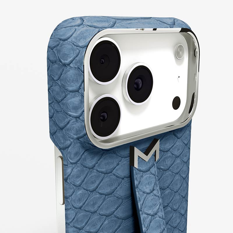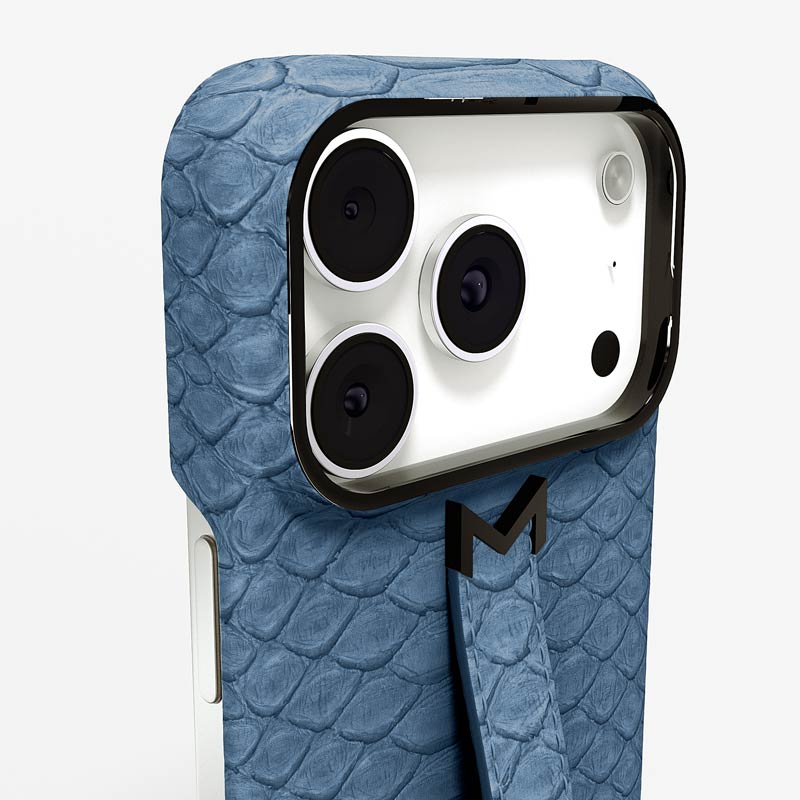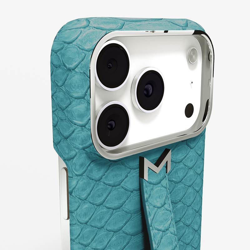 Exclusively made to order and entirely handcrafted, this iPhone 17 Pro Max case is sheathed in hand-selected python leather — chosen for its exotic texture, unique scale pattern, and bold presence. Inside, a soft Alcantara lining cradles your device, preserving its flawless condition. The hand-polished 316L stainless steel logo and camera ring reflect a commitment to detail and craftsmanship rarely seen.