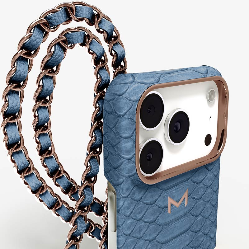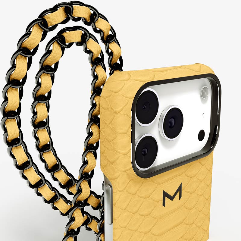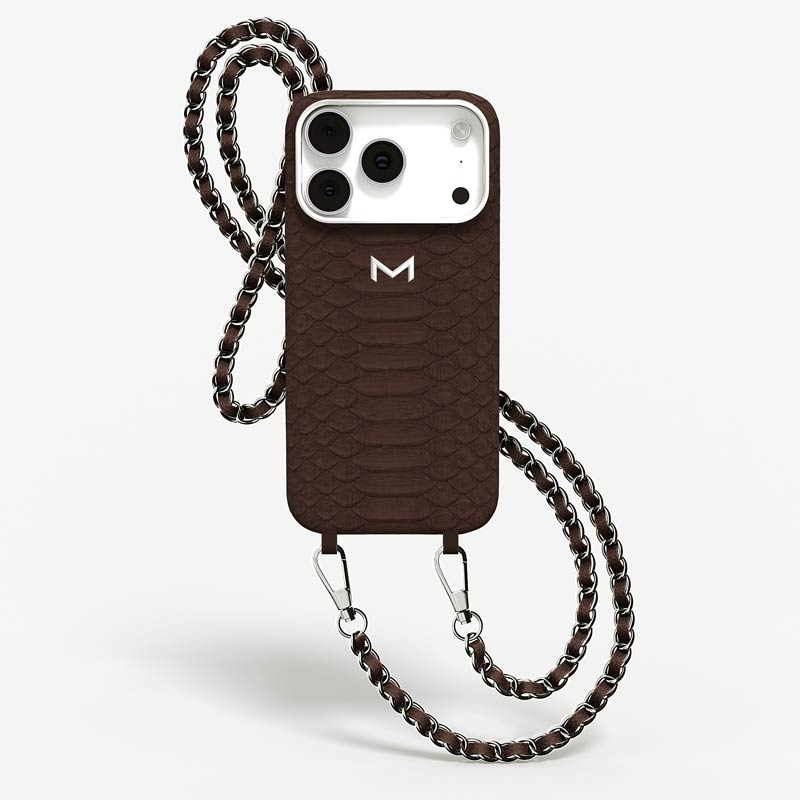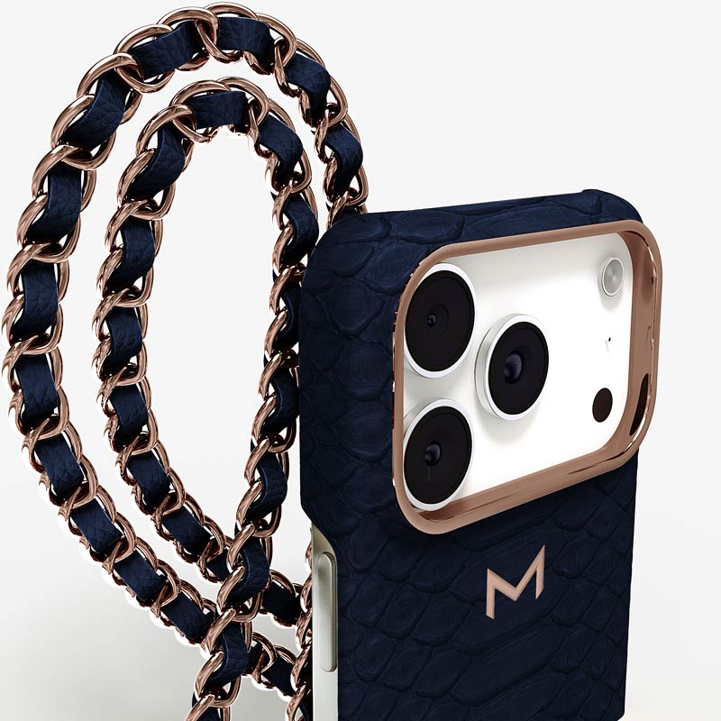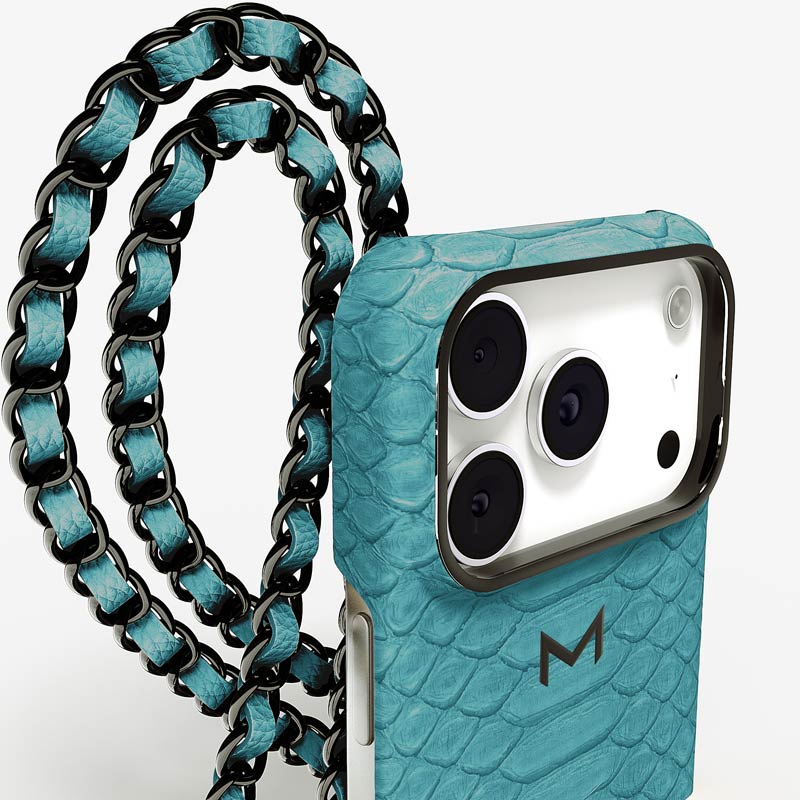 Exclusively made to order and entirely handcrafted, this iPhone 17 Pro Max case is sheathed in hand-selected python leather — chosen for its exotic texture, unique scale pattern, and bold presence. Inside, a soft Alcantara lining cradles your device, preserving its flawless condition. The hand-polished 316L stainless steel logo and leather-interlaced metal chain reflect a commitment to detail and craftsmanship rarely seen.