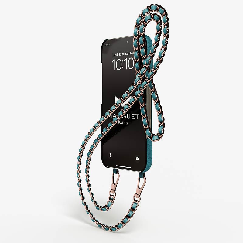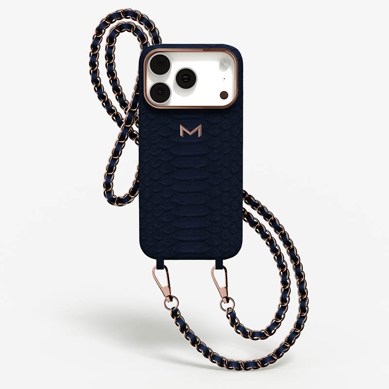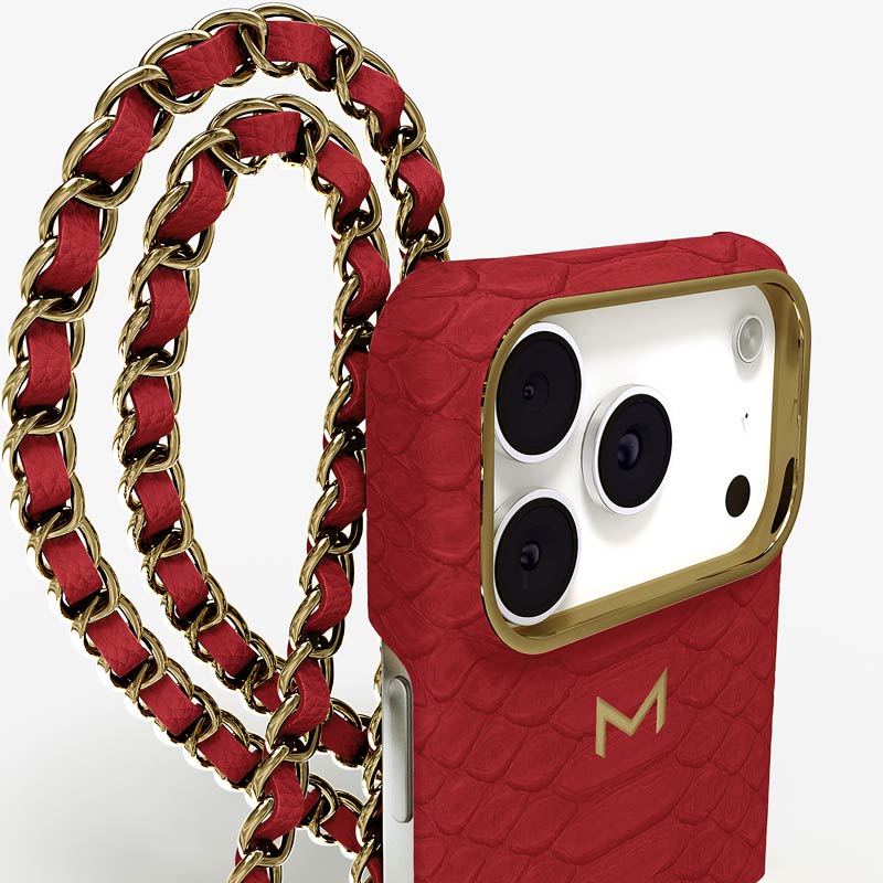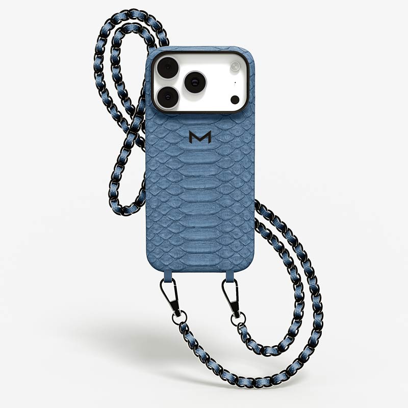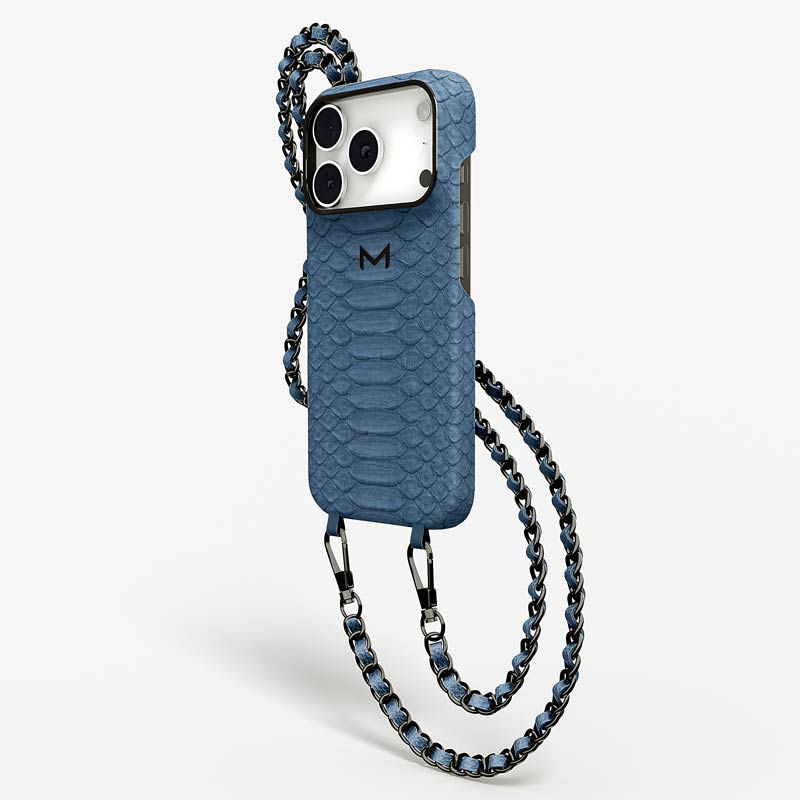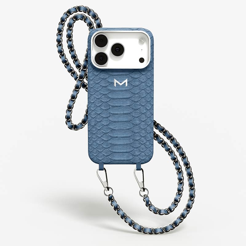 Exclusively made to order and entirely handcrafted, this iPhone 17 Pro Max case is sheathed in hand-selected python leather — chosen for its exotic texture, unique scale pattern, and bold presence. Inside, a soft Alcantara lining cradles your device, preserving its flawless condition. The hand-polished 316L stainless steel logo and leather-interlaced metal chain reflect a commitment to detail and craftsmanship rarely seen.